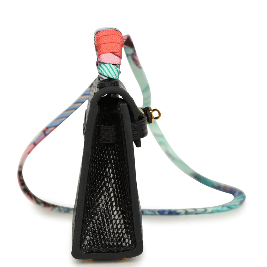 Hermes Mini Kelly Twilly Bag Charm Black Shiny Niloticus Lizard Gold Hardware