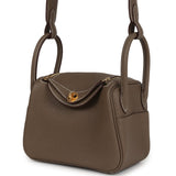 Hermes Mini Lindy II Etoupe Clemence Gold Hardware
