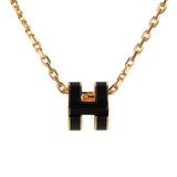 Hermes Mini Pop H Pendant Necklace Black Enamel Lacquered Yellow Gold Hardware