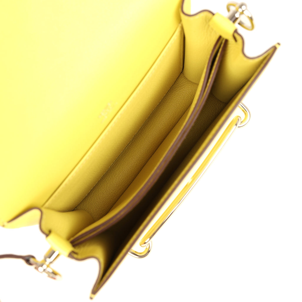 Hermes Mini Sac Roulis Bi-color White and Lime Evercolor Palladium Hardware