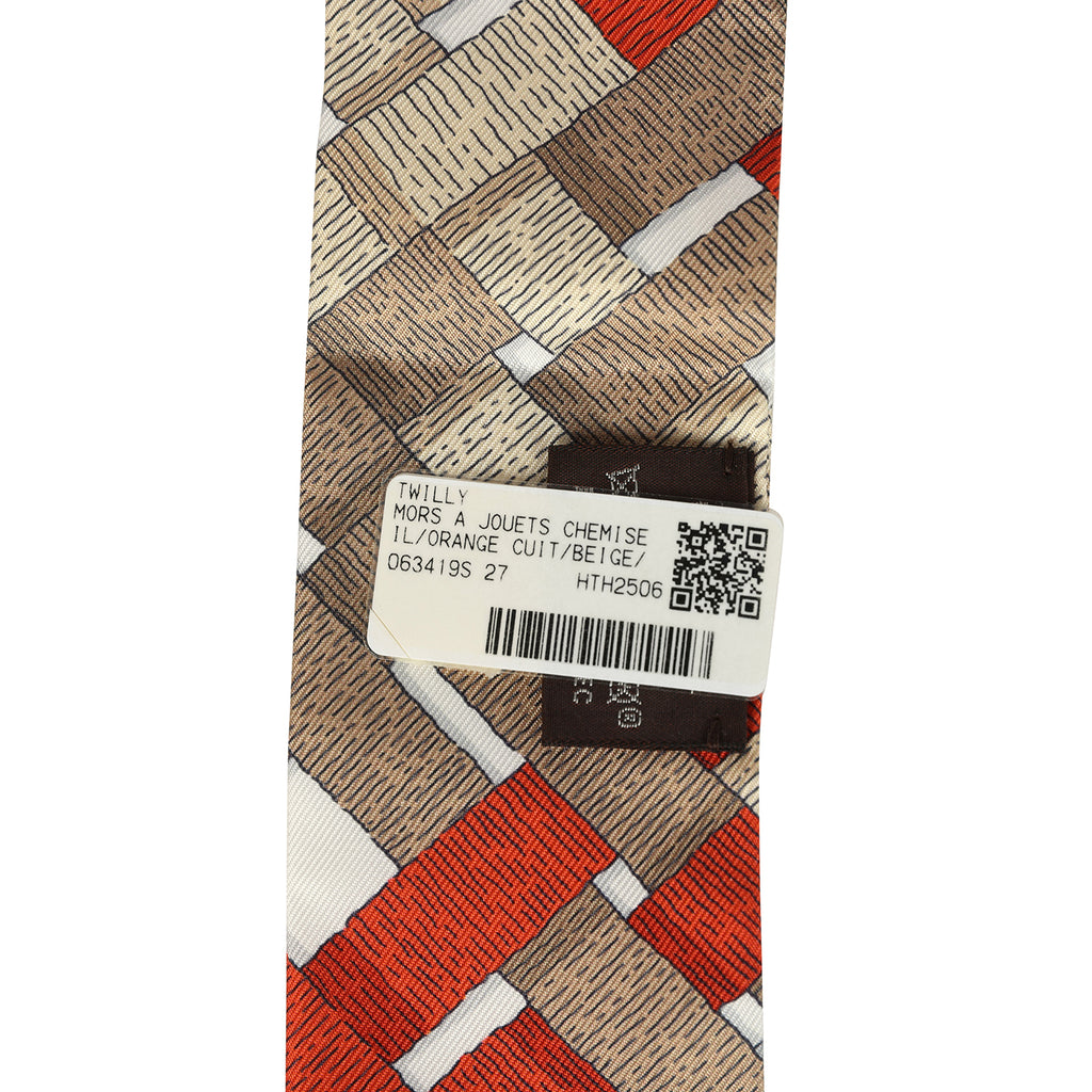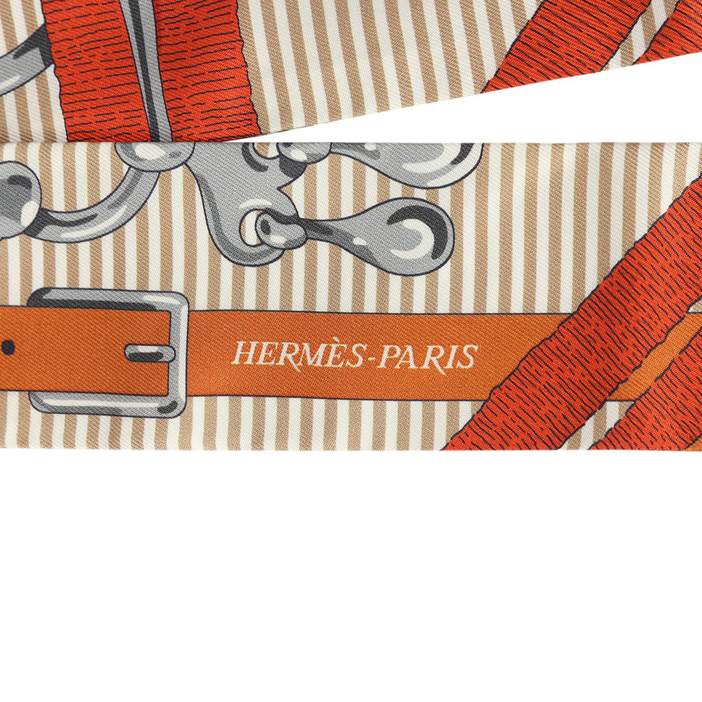Hermes "Mors A Jouets Chemise" Orange Cuit, Beige and Corail Multi Silk Twilly Pair