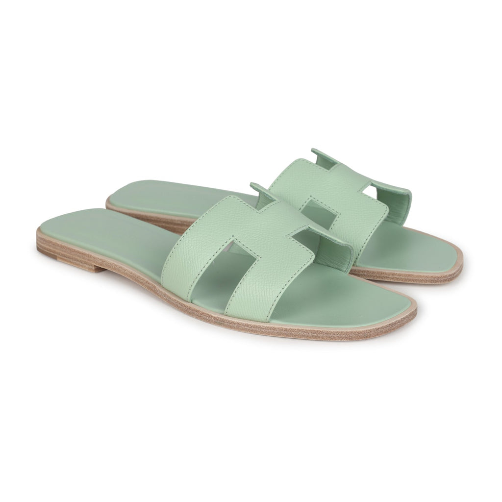 Hermes Oran Sandals Vert Jade Epsom 39.5 EU
