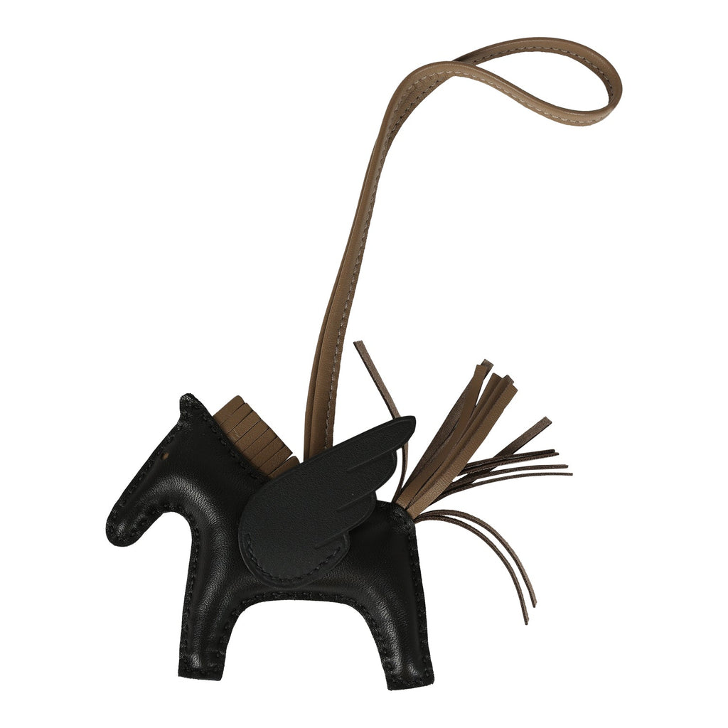 Hermes Pegase Rodeo Bag Charm PM Black and Etoupe Swift Milo Lambskin