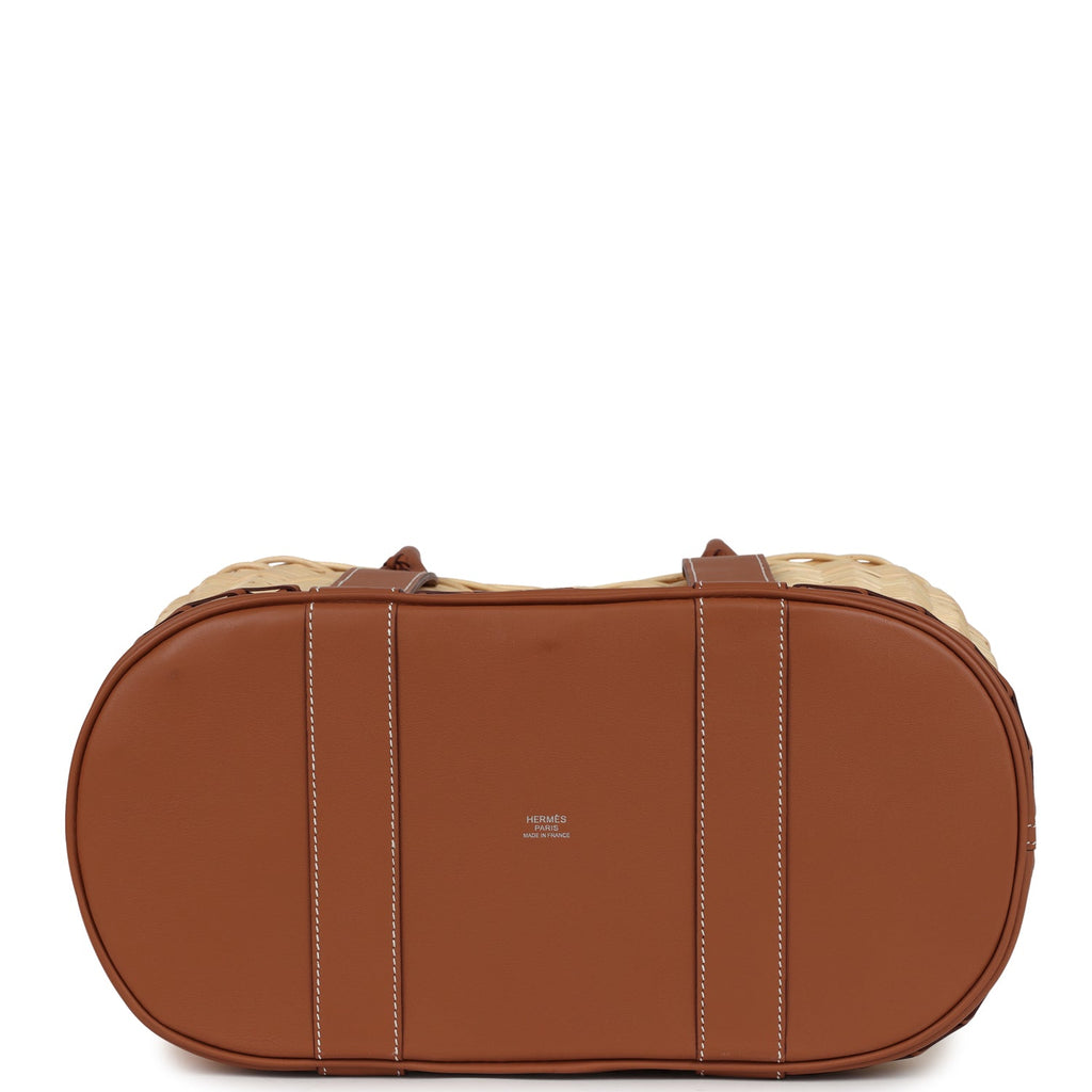 This limited edition Hermes Picnic Garden Party is in Gold swift leather and Natural Osier Wicker, featuring contrast stitching, Gold swift base and double rolled handles.