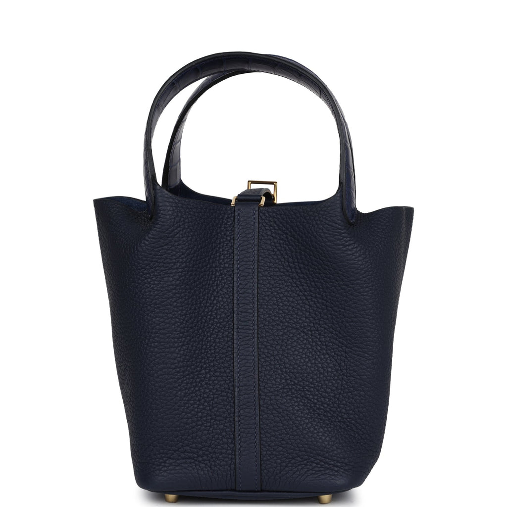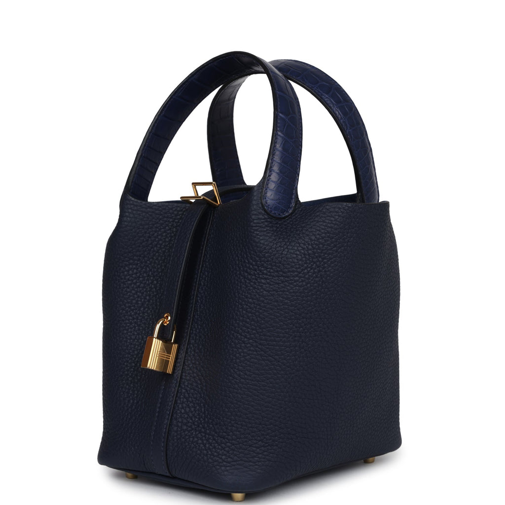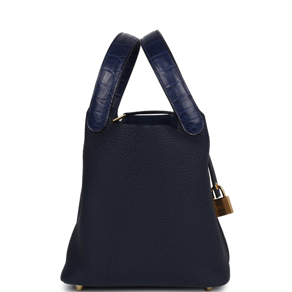 Hermes Picotin 18 Touch Bleu Nuit Clemence and Bleu Marine Matte Alligator Gold Hardware