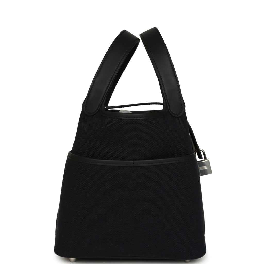 Hermes Picotin Cargo 18 Black Toile Goeland and Swift Palladium Hardware