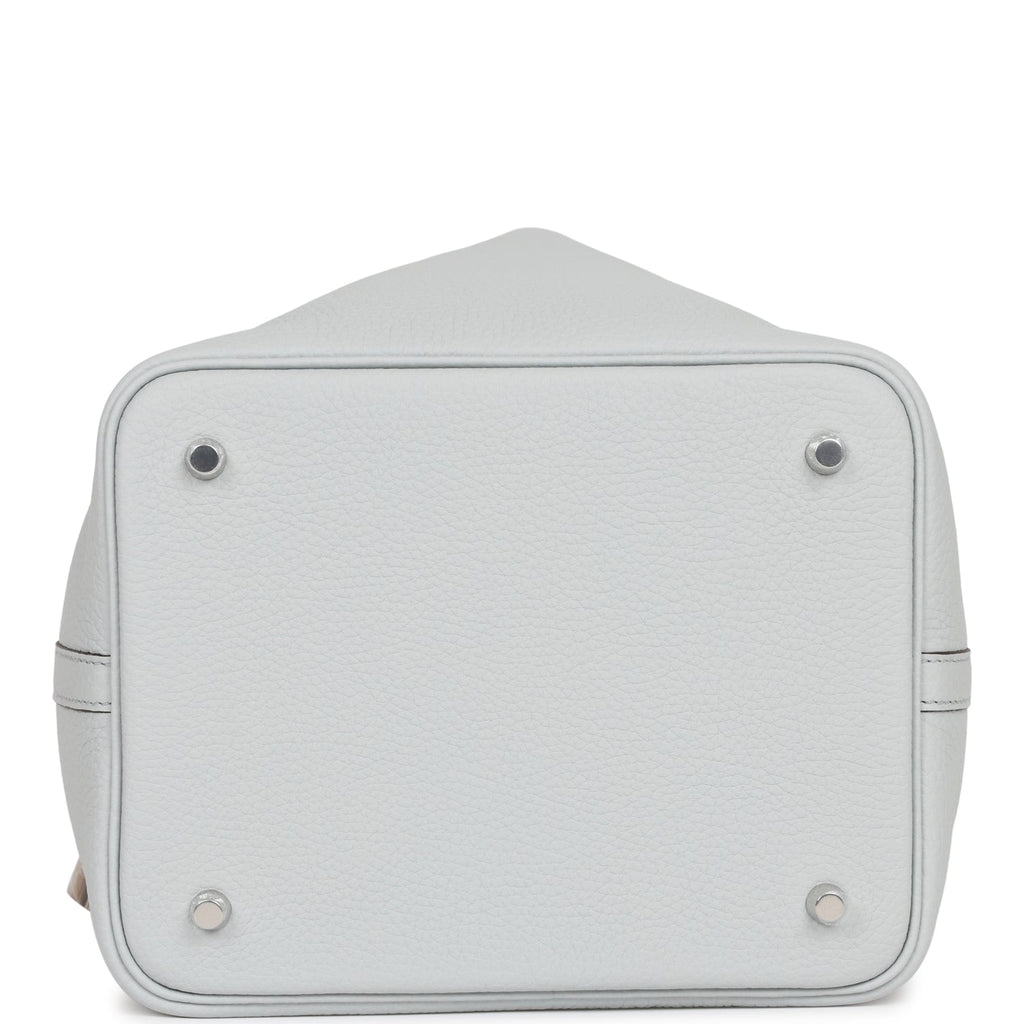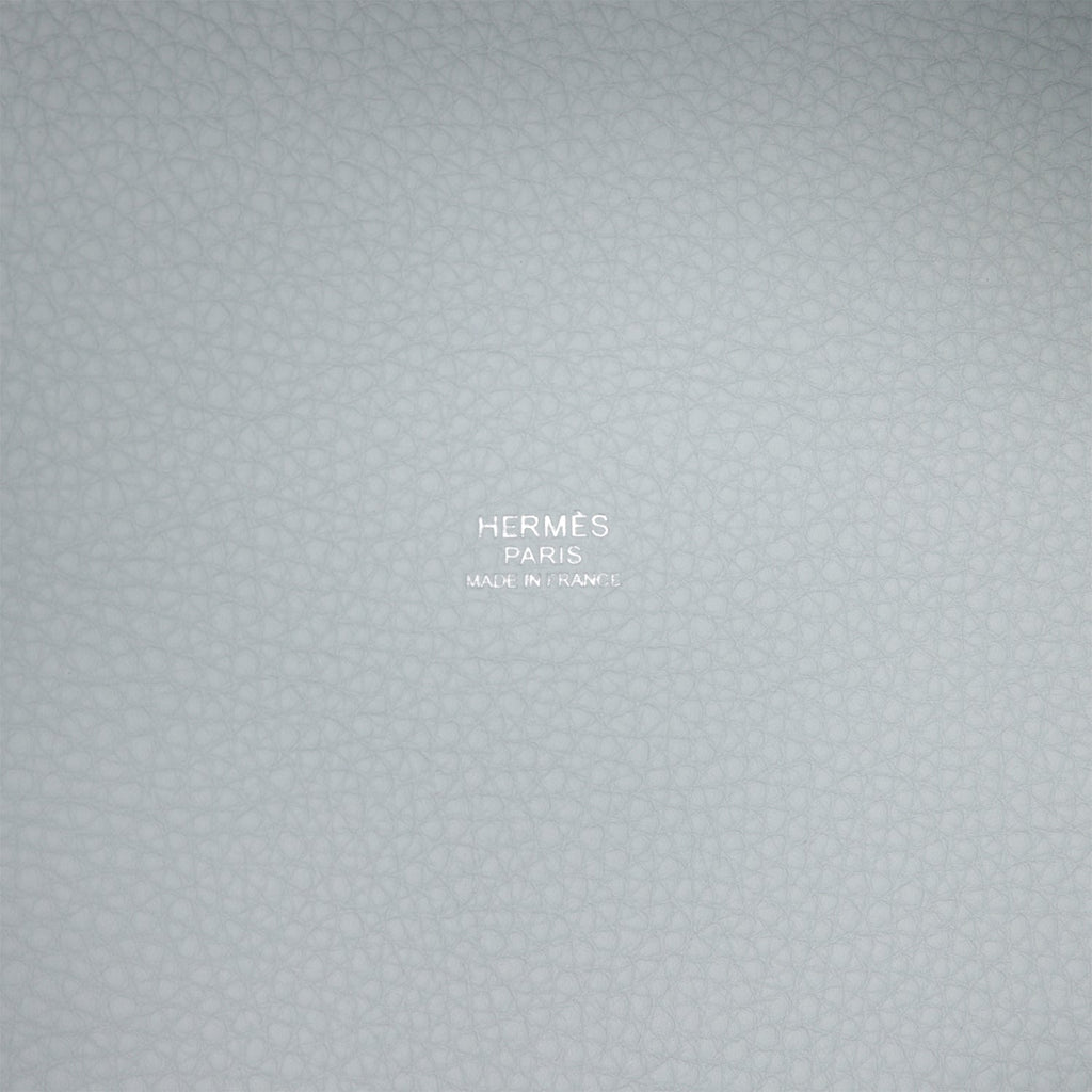 This Picotin is in Bleu Pale clemence leather with palladium hardware and has tonal stitching with two top handles.