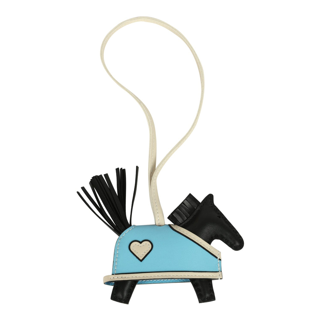 Hermes Rodeo Robeo Coeur Charm PM Black, Craie, Bleu Celeste Milo Lambskin