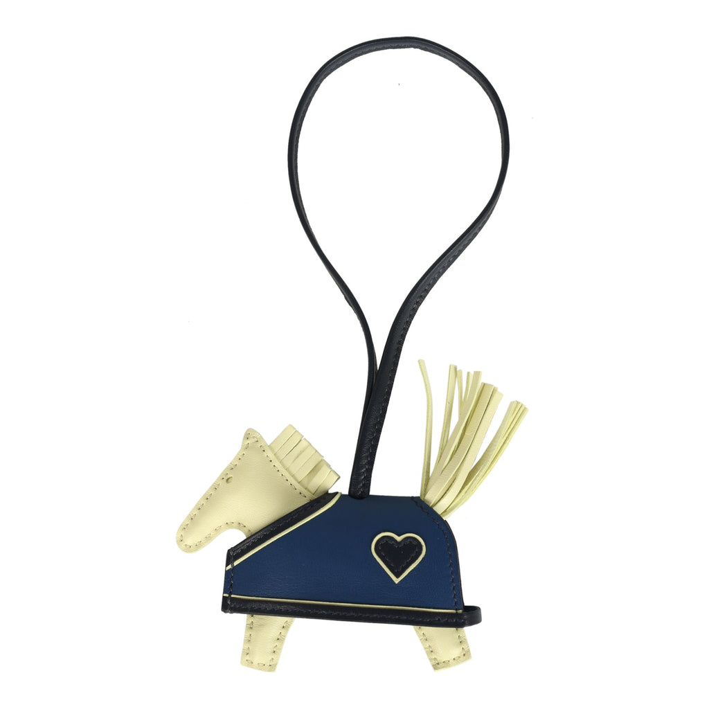Hermes Rodeo Robeo Coeur Charm PM Jaune Milton, Bleu Nuit and Bleu Tie Milo Lambskin