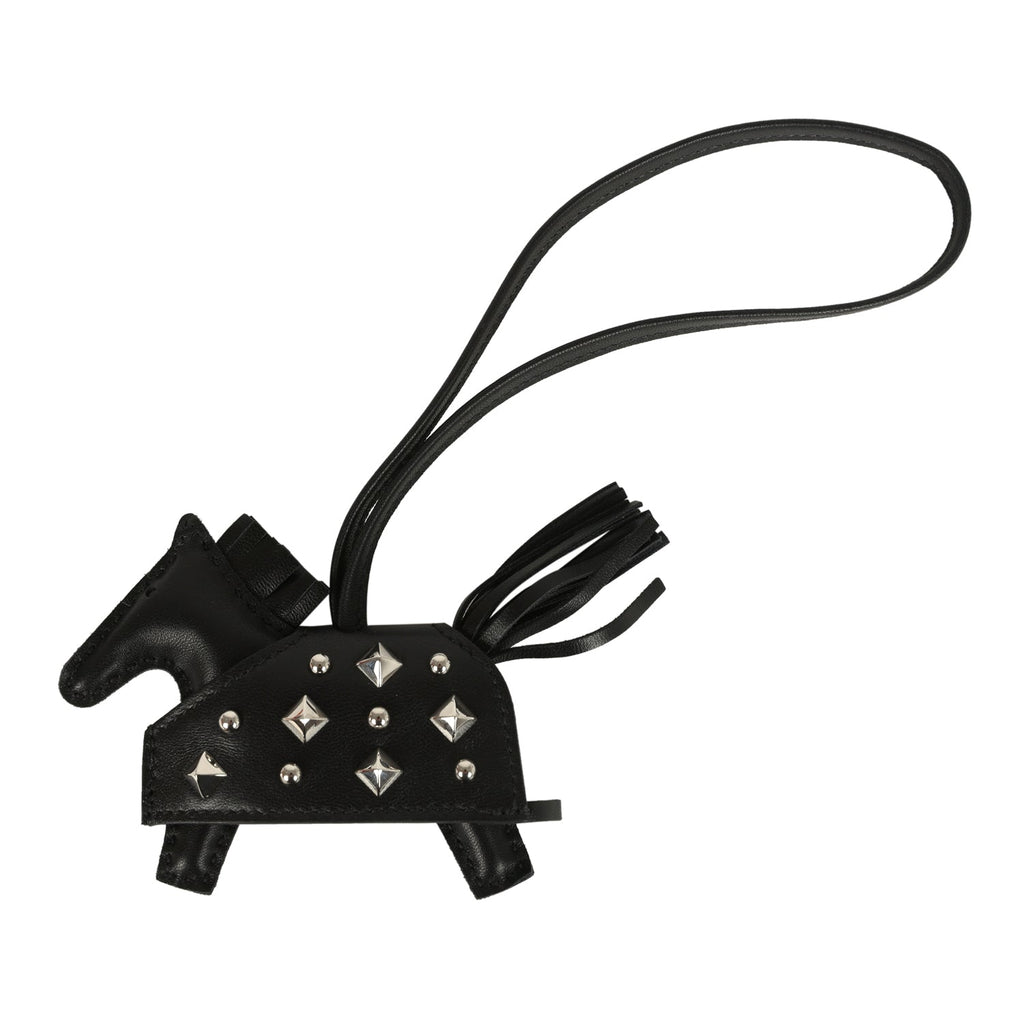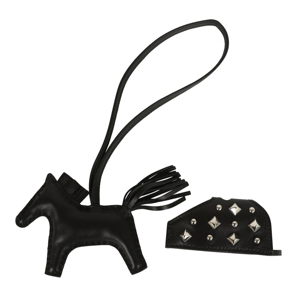 Hermes Rodeo Rock Bag Charm PM Black Milo Lambskin Palladium Hardware
