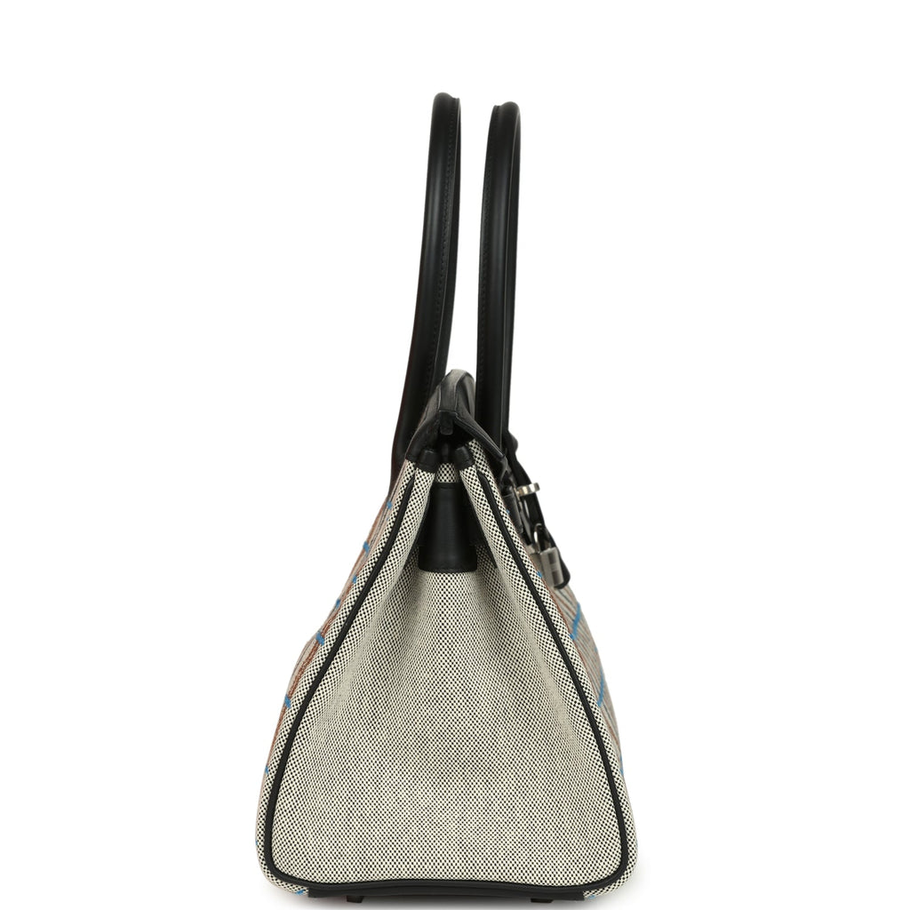 Hermes Shoulder Birkin Light 39 Multicolor Toile and Black Swift Palladium Hardware