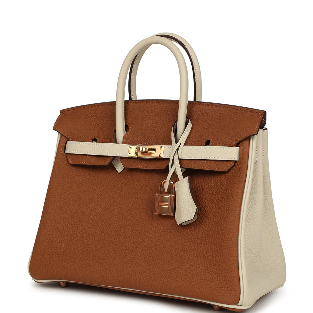 Hermes Special Order (HSS) Birkin 25 Gold and Craie Togo Rose Gold Hardware
