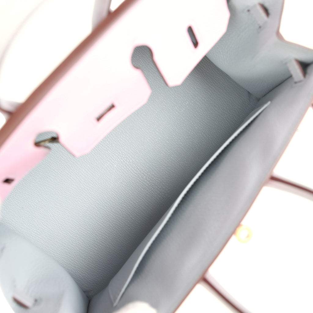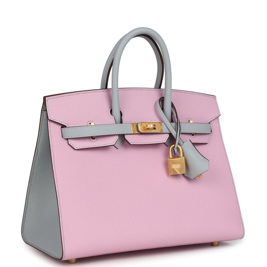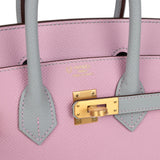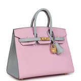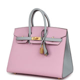 Hermes Special Order (HSS) Birkin Sellier 25 Mauve Sylvestre and Bleu Glacier Epsom Brushed Gold Hardware