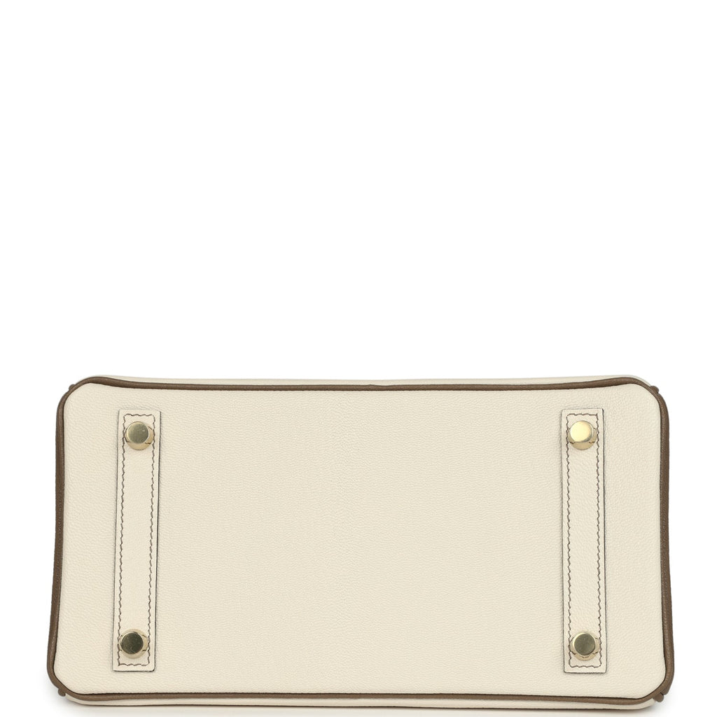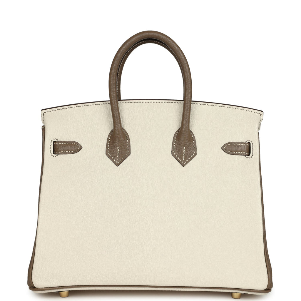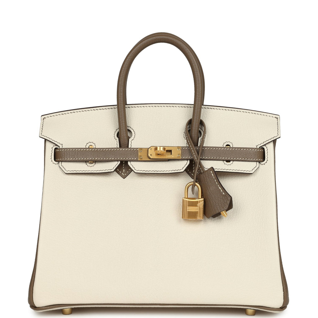 Hermes Special Order (HSS) Birkin 25 Nata and Etoupe Chevre Mysore Brushed Gold Hardware