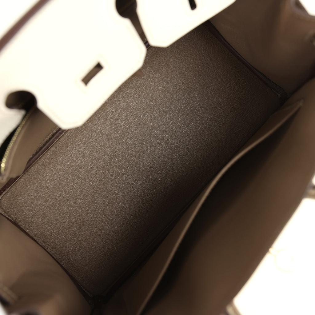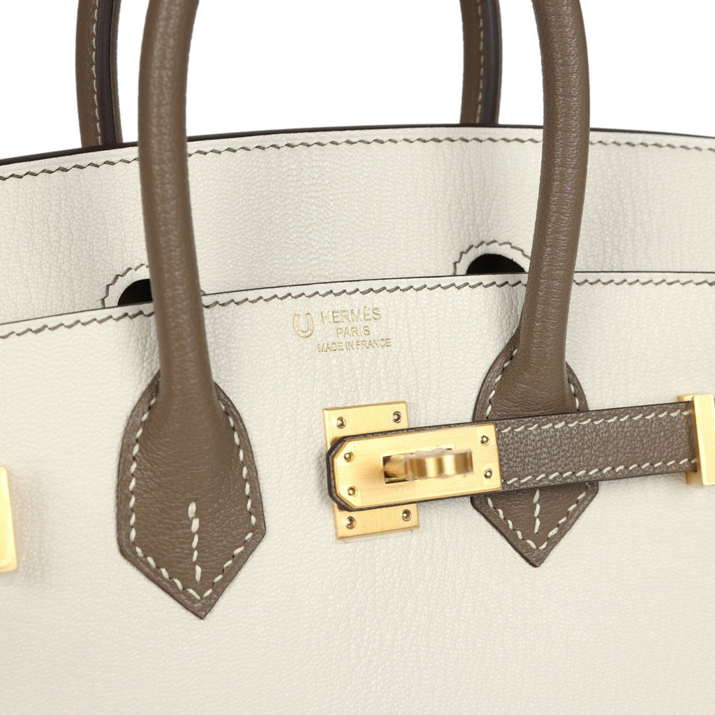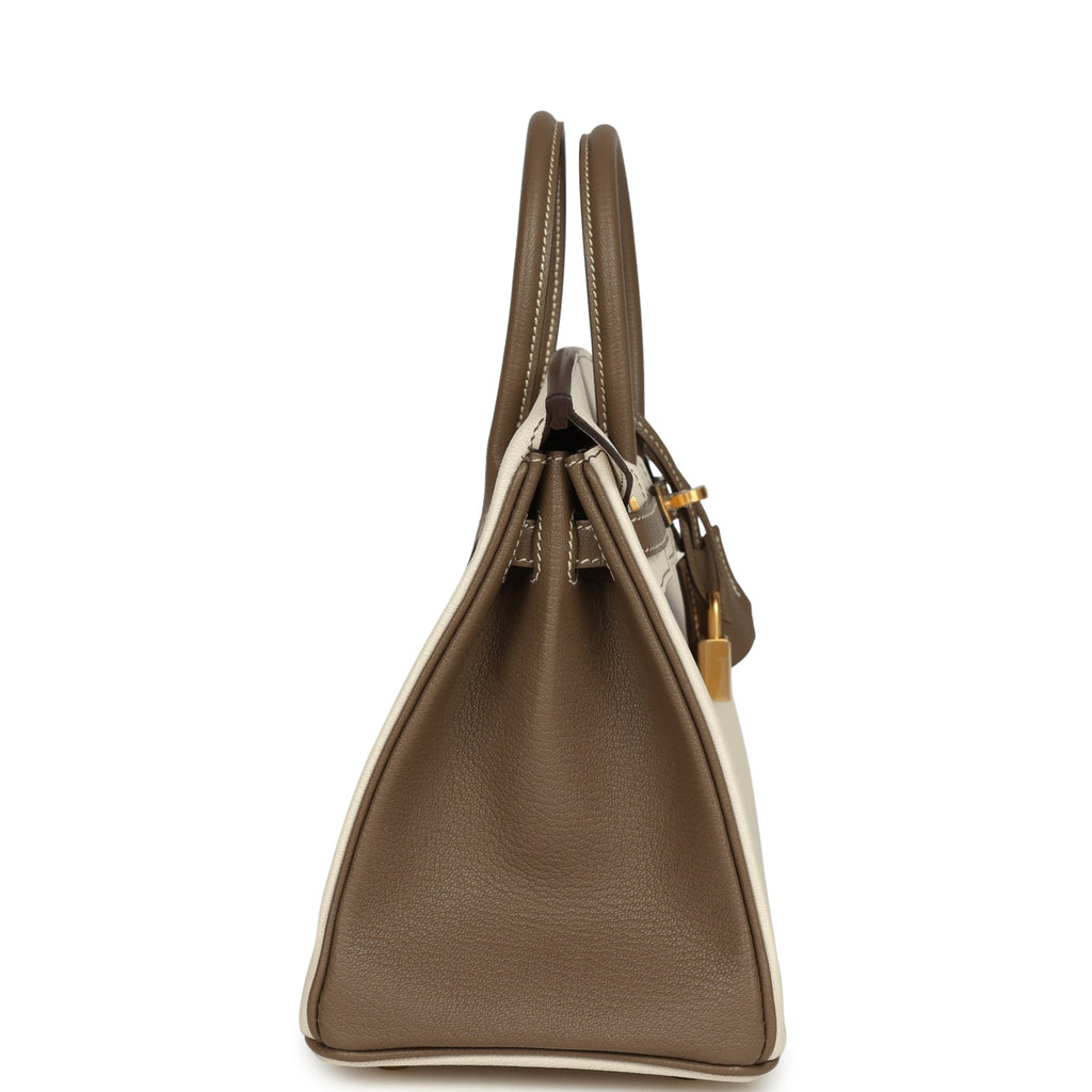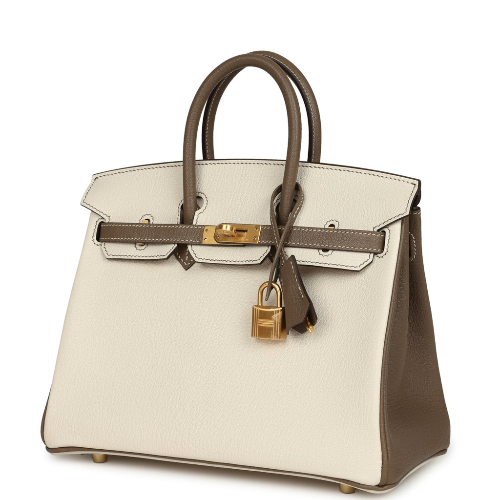 Hermes Special Order (HSS) Birkin 25 Nata and Etoupe Chevre Mysore Brushed Gold Hardware