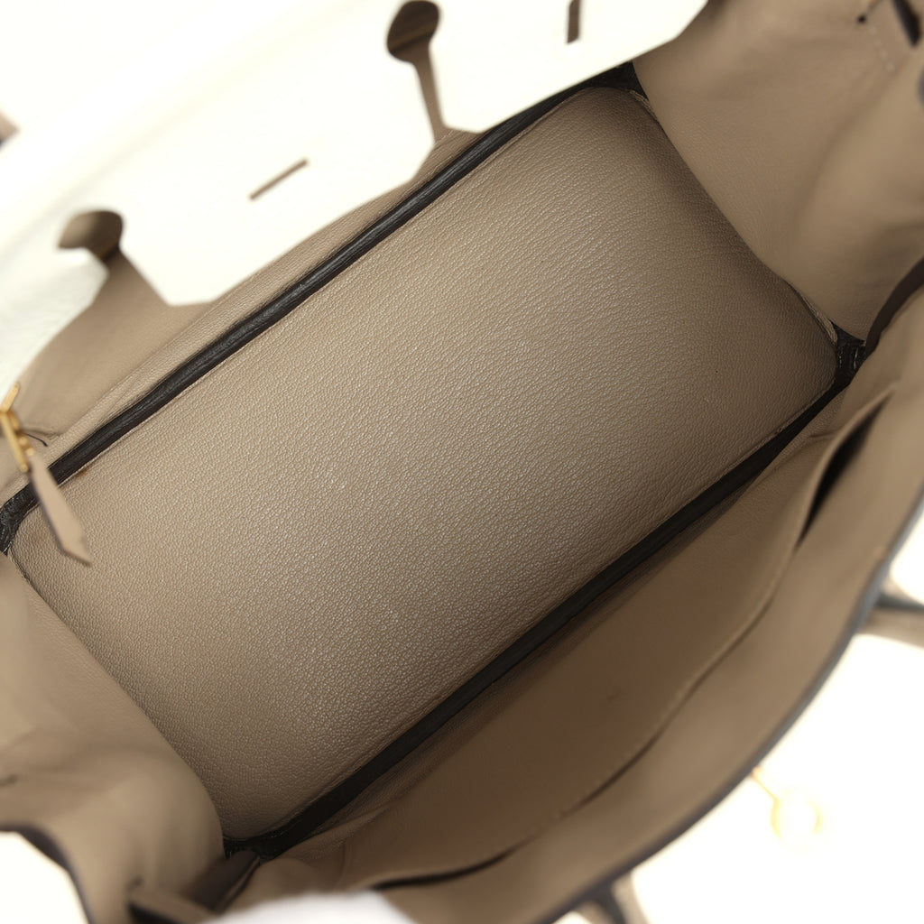 Hermes Special Order (HSS) Birkin 25 White and Etoupe Clemence Brushed Gold Hardware