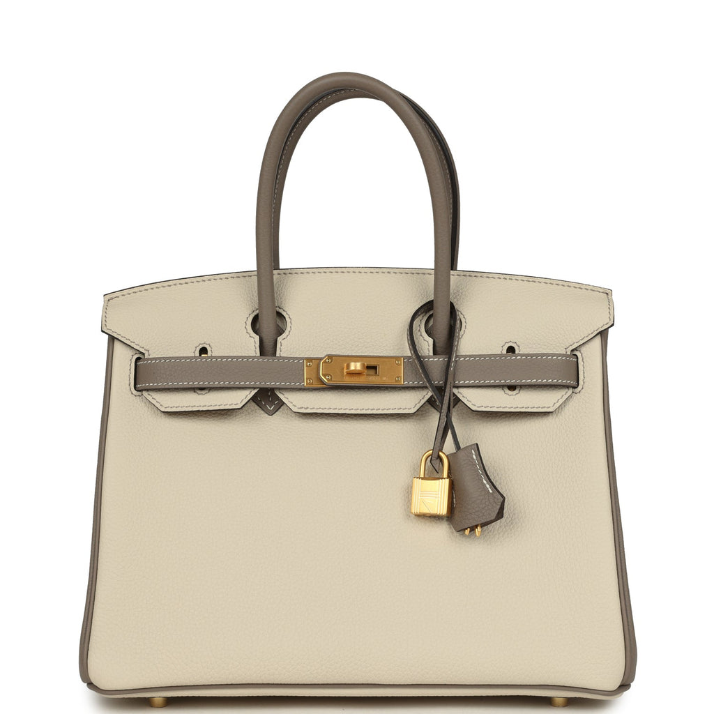 Hermes Special Order (HSS) Birkin 30 Etoupe and Craie Togo Brushed Gold Hardware