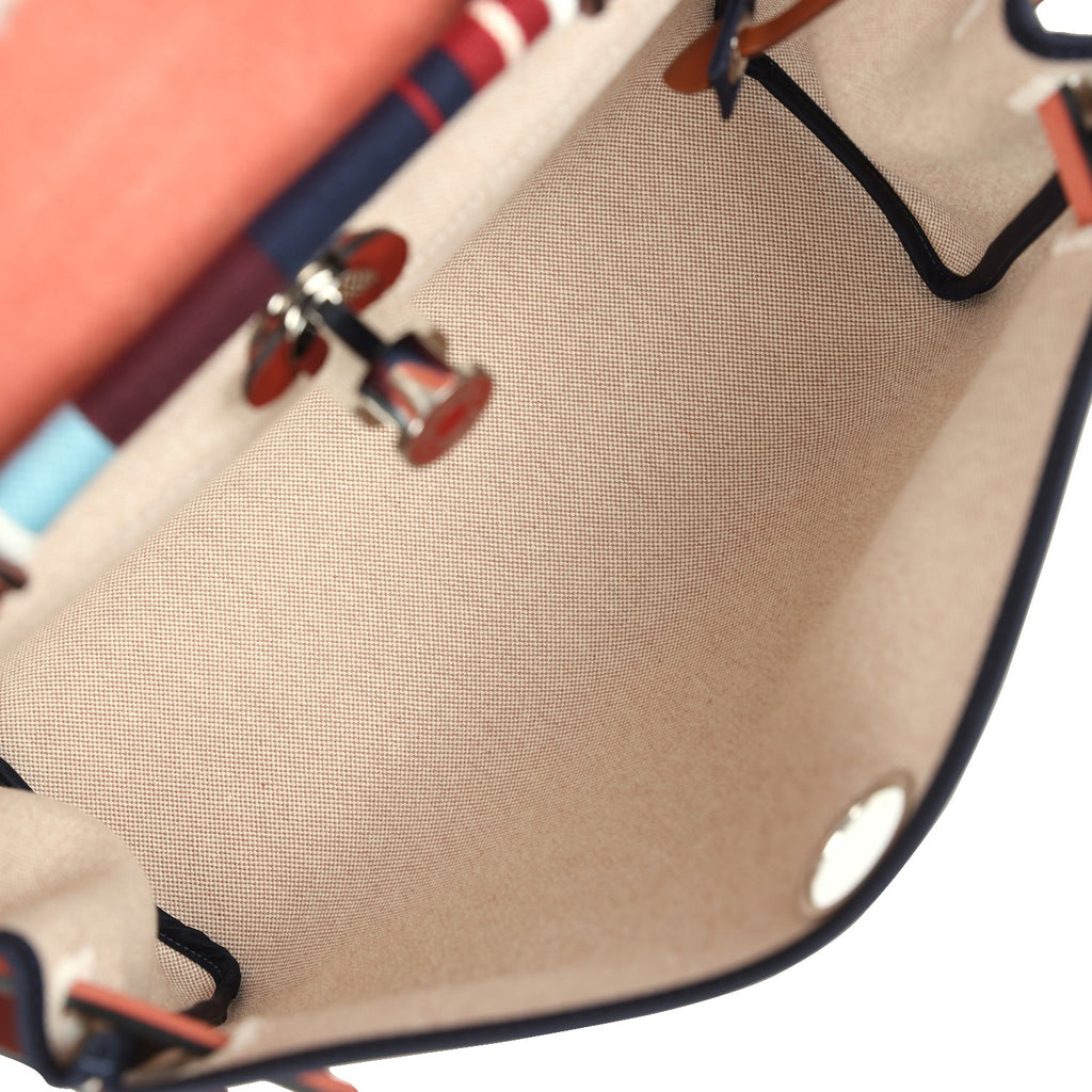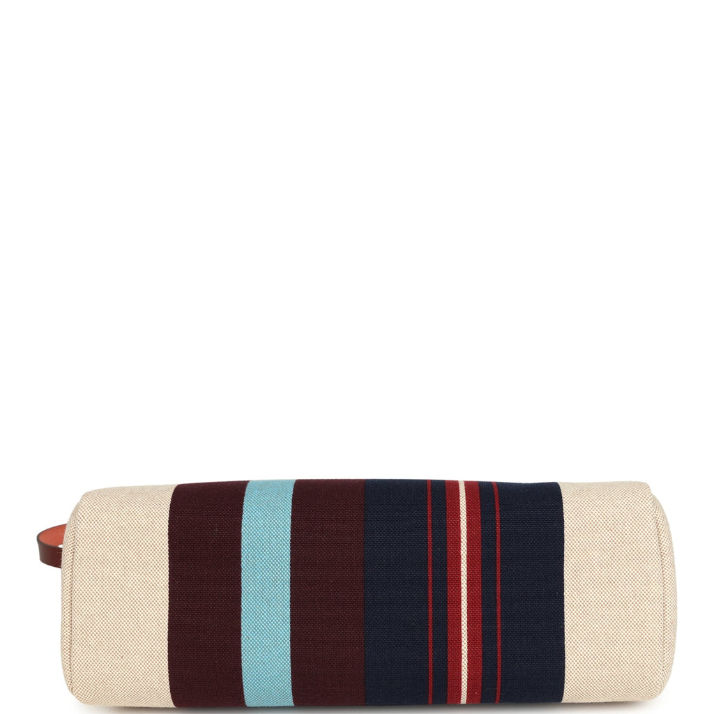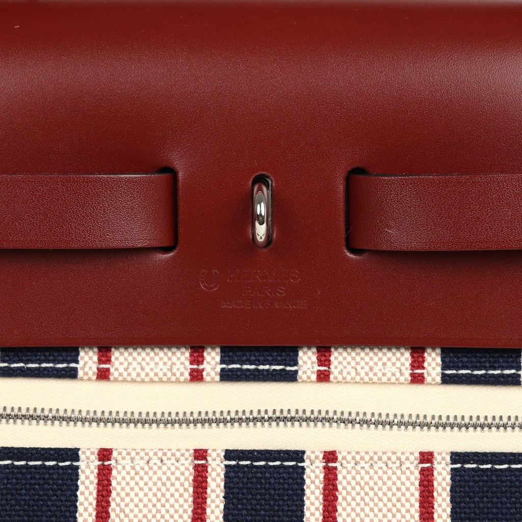 Hermes Special Order (HSS) Herbag Zip PM 31 "Striped" Rouge H Vache Hunter, Ecru, Bleu, Bordeaux and Beige Toile H Canvas Lacquered Palladium Hardware