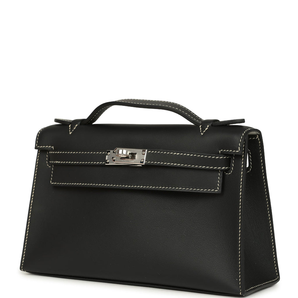 Hermes Special Order (HSS) Kelly Pochette Black Verso Swift Palladium Hardware