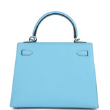 Hermes Special Order (HSS) Kelly Sellier 25 Bleu Celeste Verso Epsom Palladium Hardware