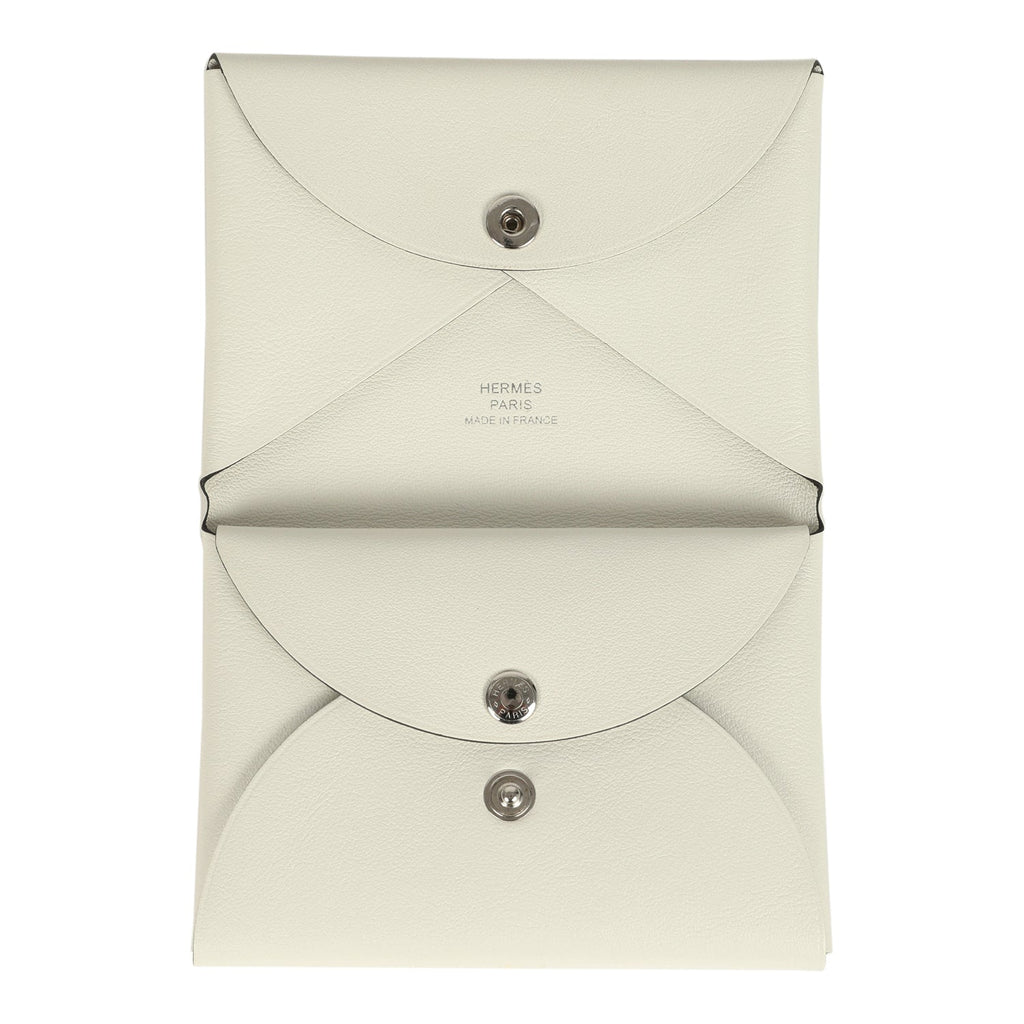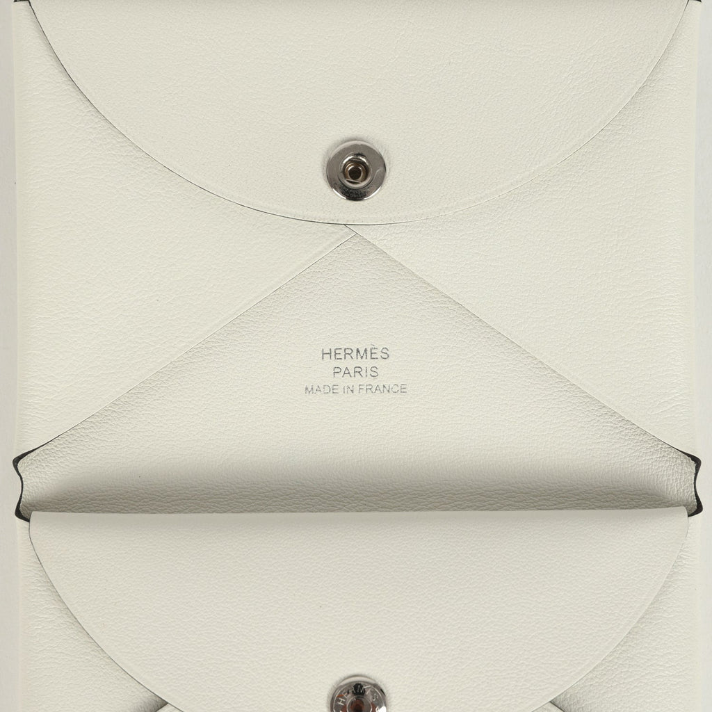Hermes "Spring Horse" Calvi Duo Card Holder White Swift Palladium Hardware