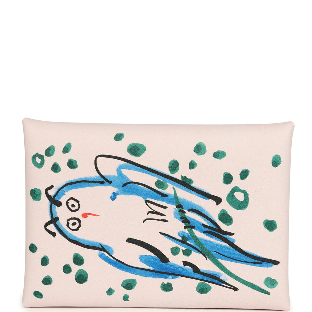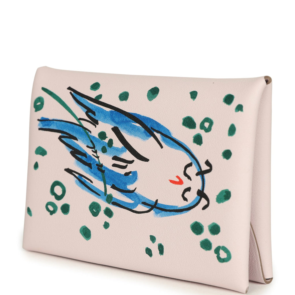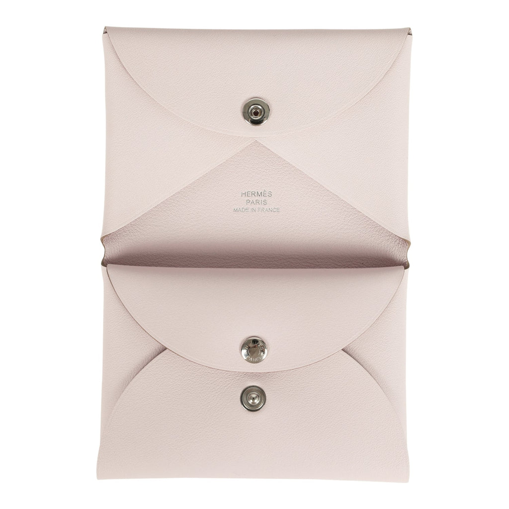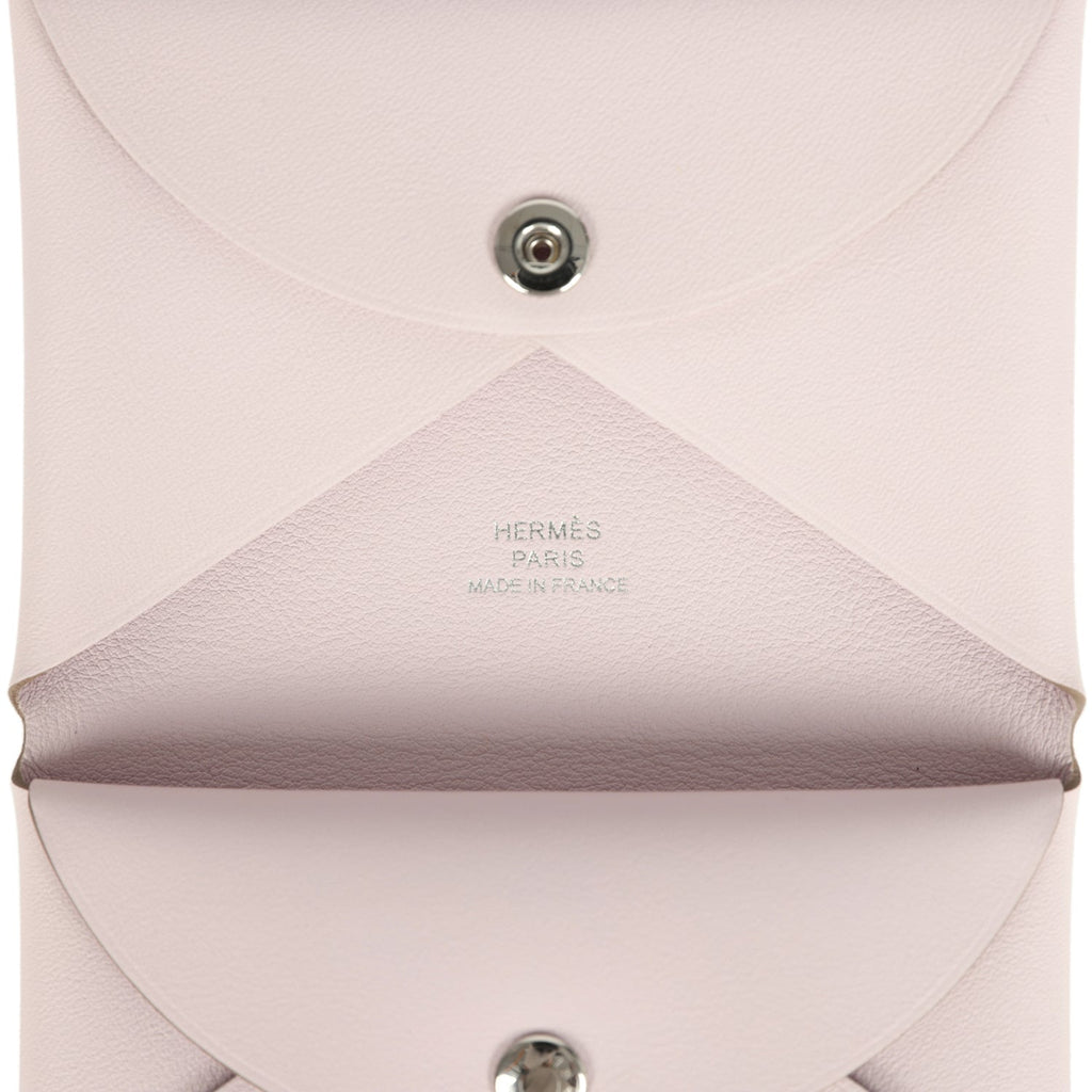 Hermes "Spring Owl" Calvi Duo Card Holder Mauve Pale Swift Palladium Hardware