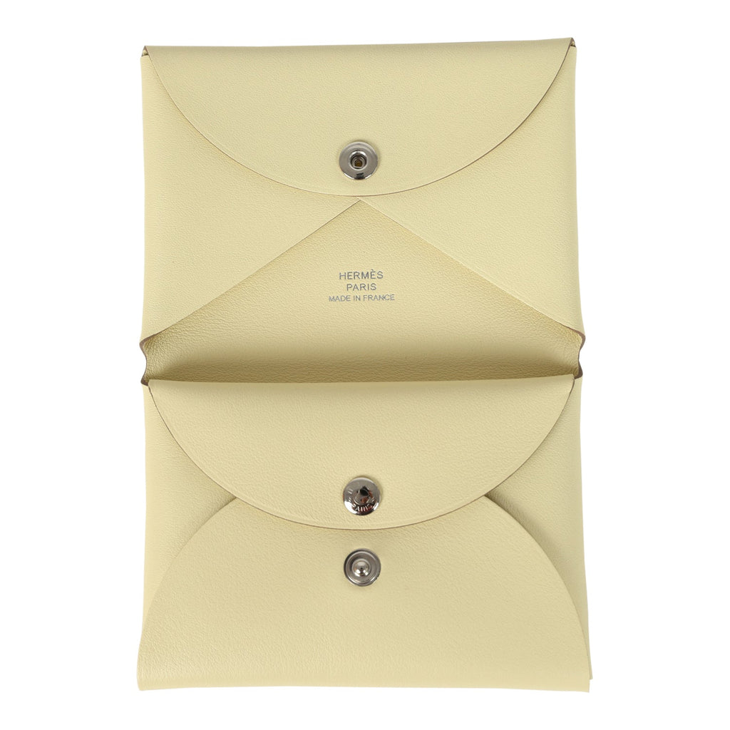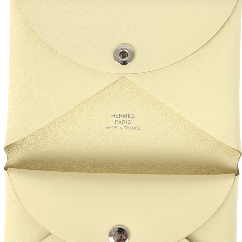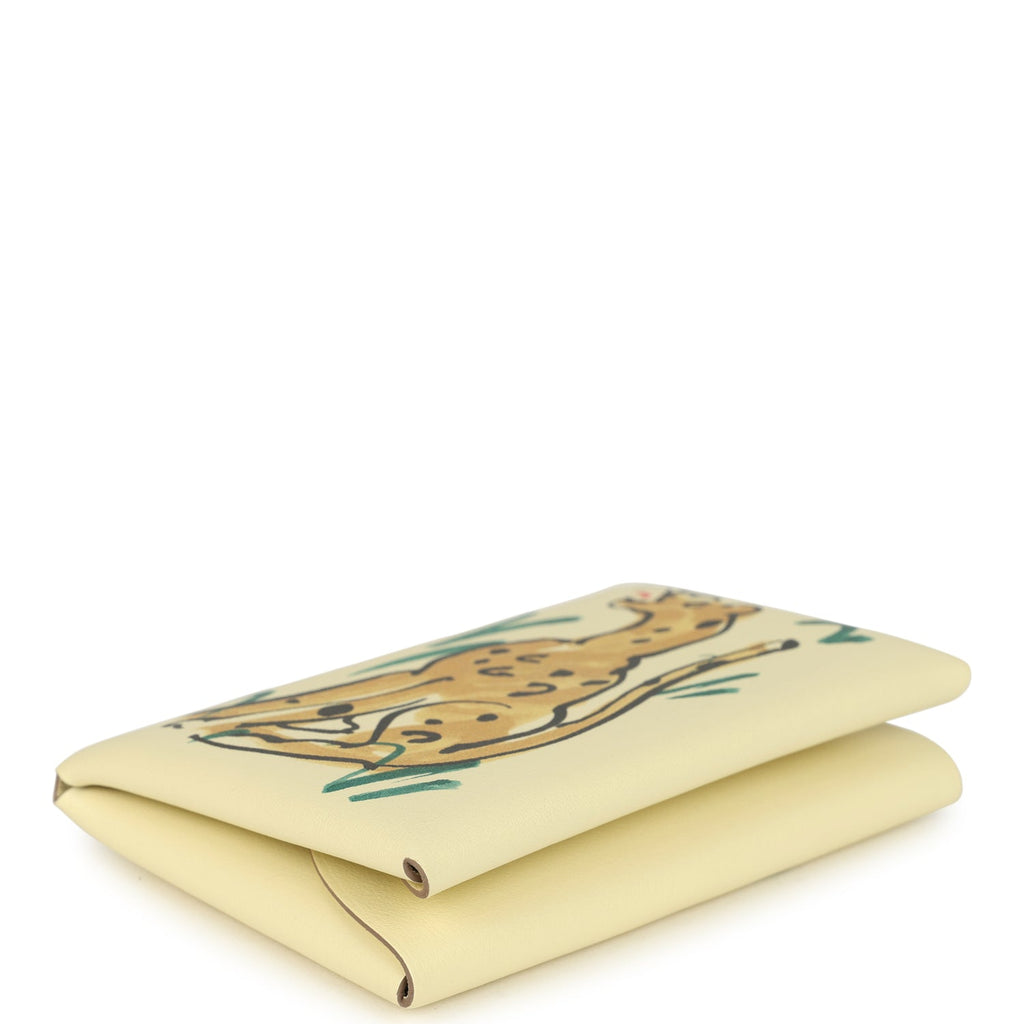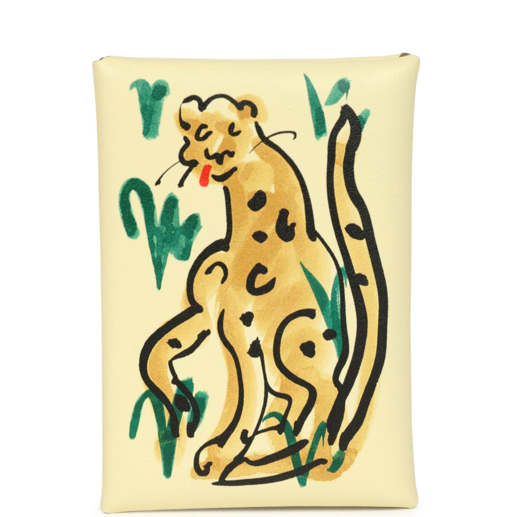 Hermes "Spring Panther" Calvi Duo Card Holder Jaune Milton Swift Palladium Hardware