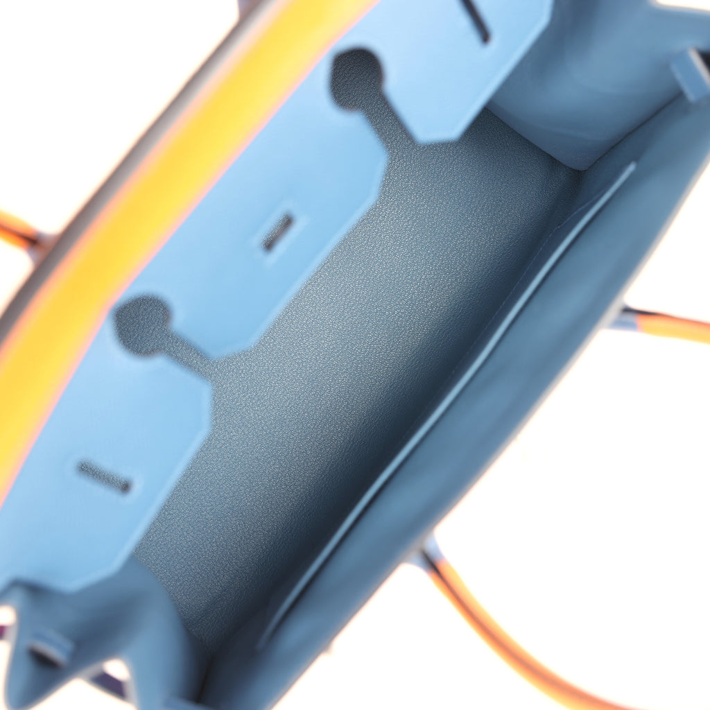 Hermes "Sunset" Birkin Sellier 35 Abricot, Bleu Agate, Magnolia and Rouge Casaque Epsom Palladium Hardware