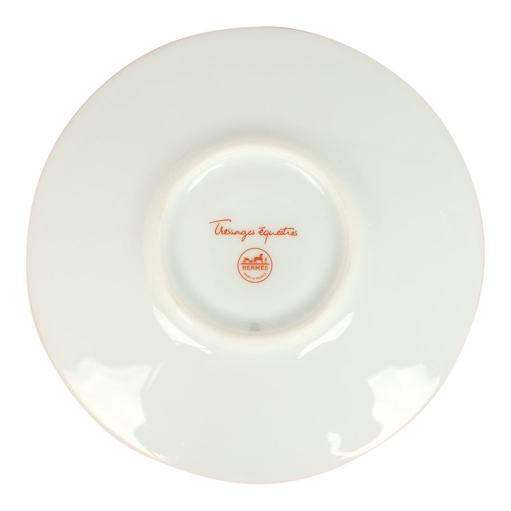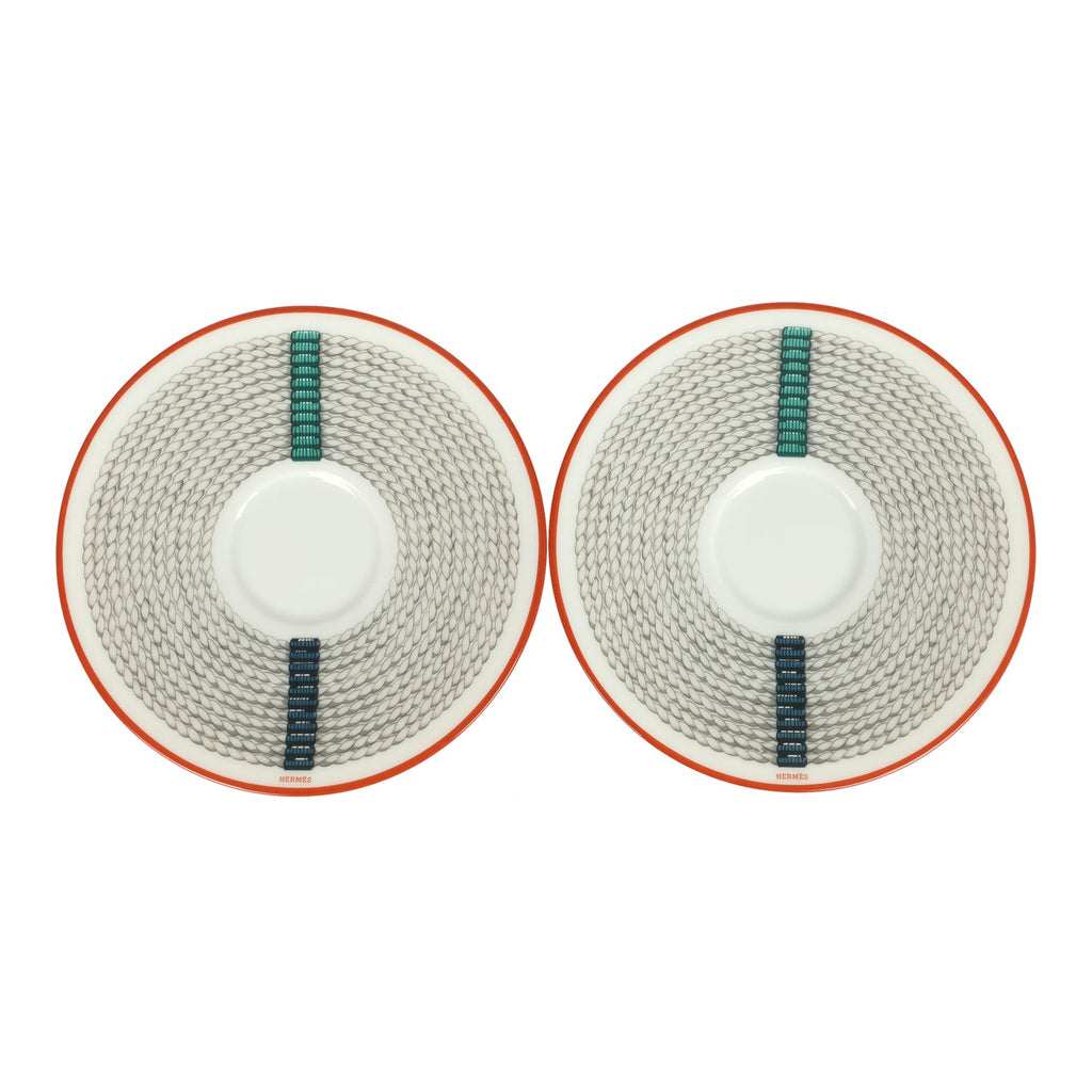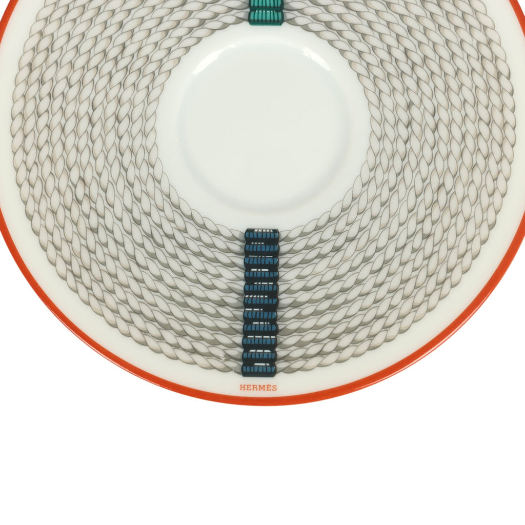 Hermes "Tressages Equestres" Orange, White and Blue Porcelain Coffee Cup & Saucer Set of 2