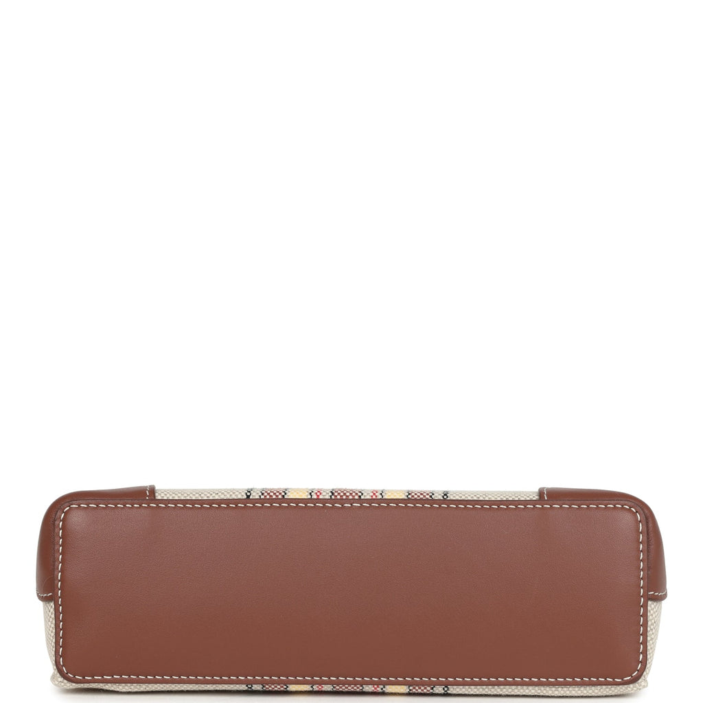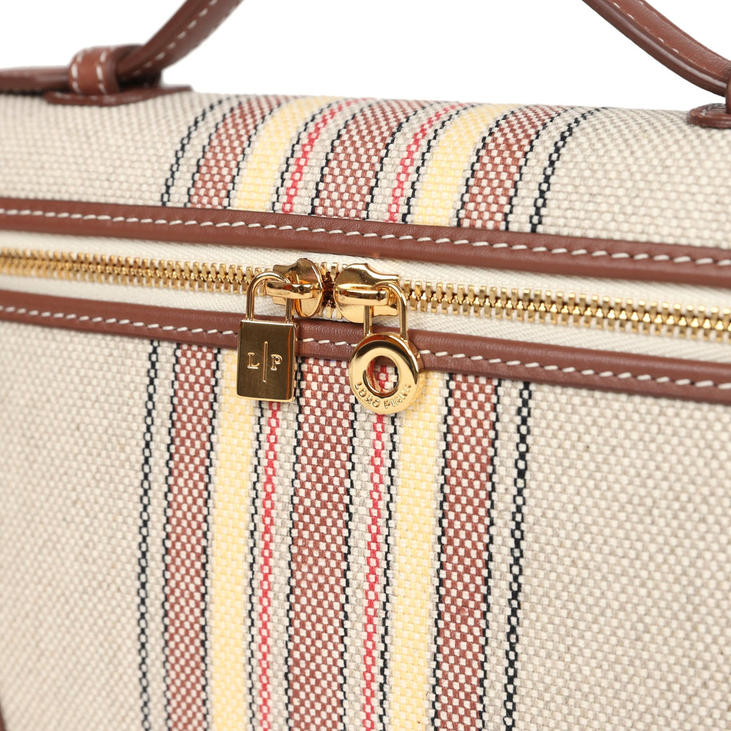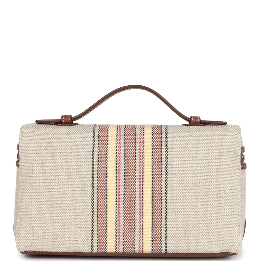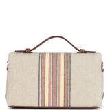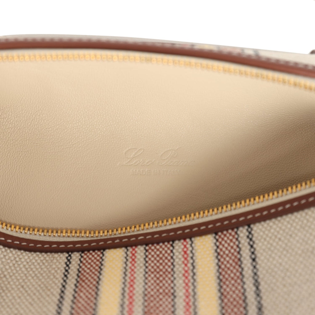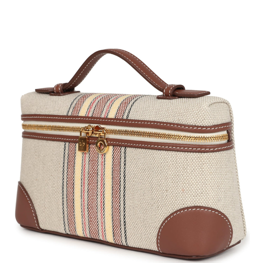 Loro Piana Extra Pocket L19 Pouch Record and Caramel Sugar Canvas Stripes Gold Hardware