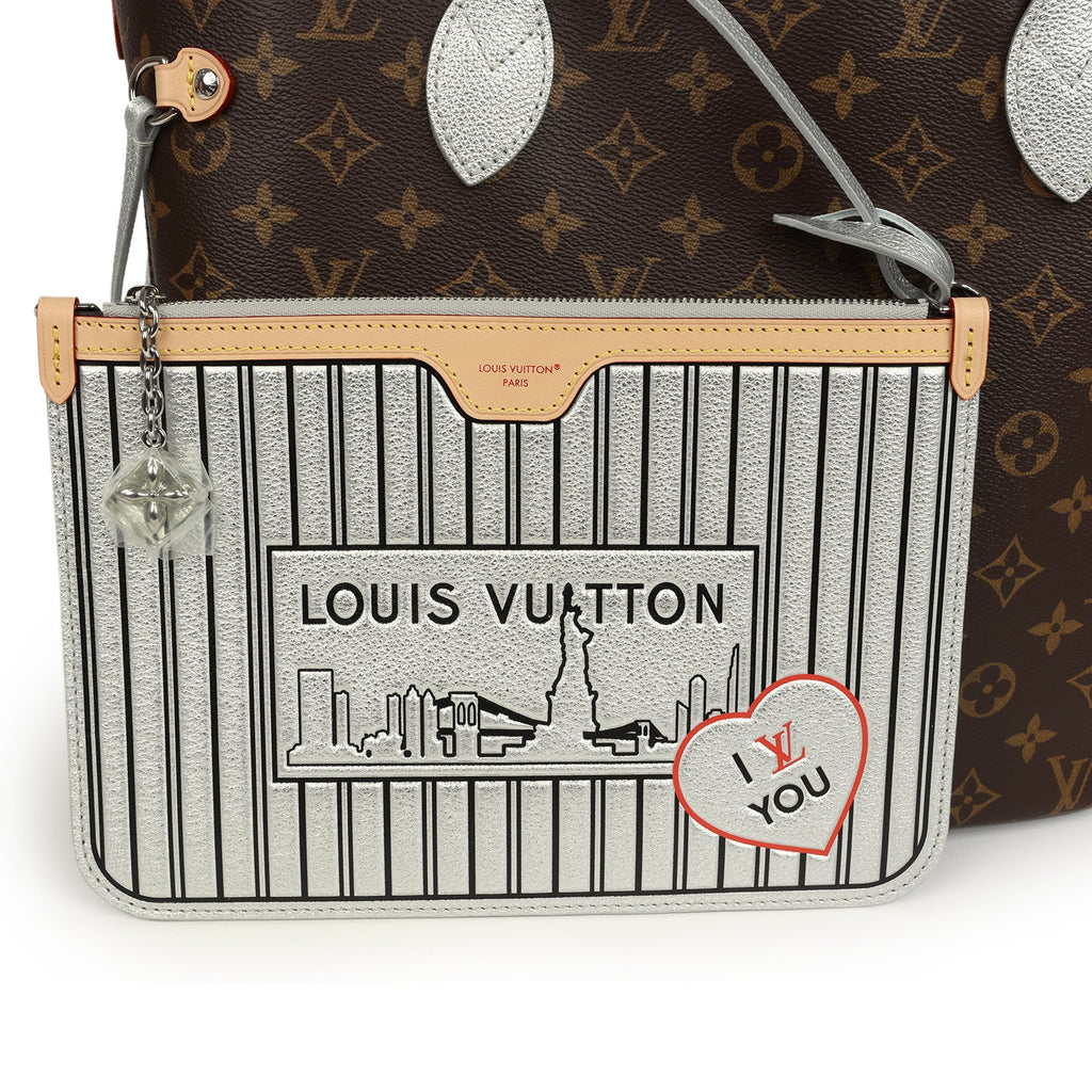 Louis Vuitton "57th Street NYC" Neverfull Inside Out MM Brown and Silver Monogram Silver Hardware