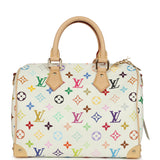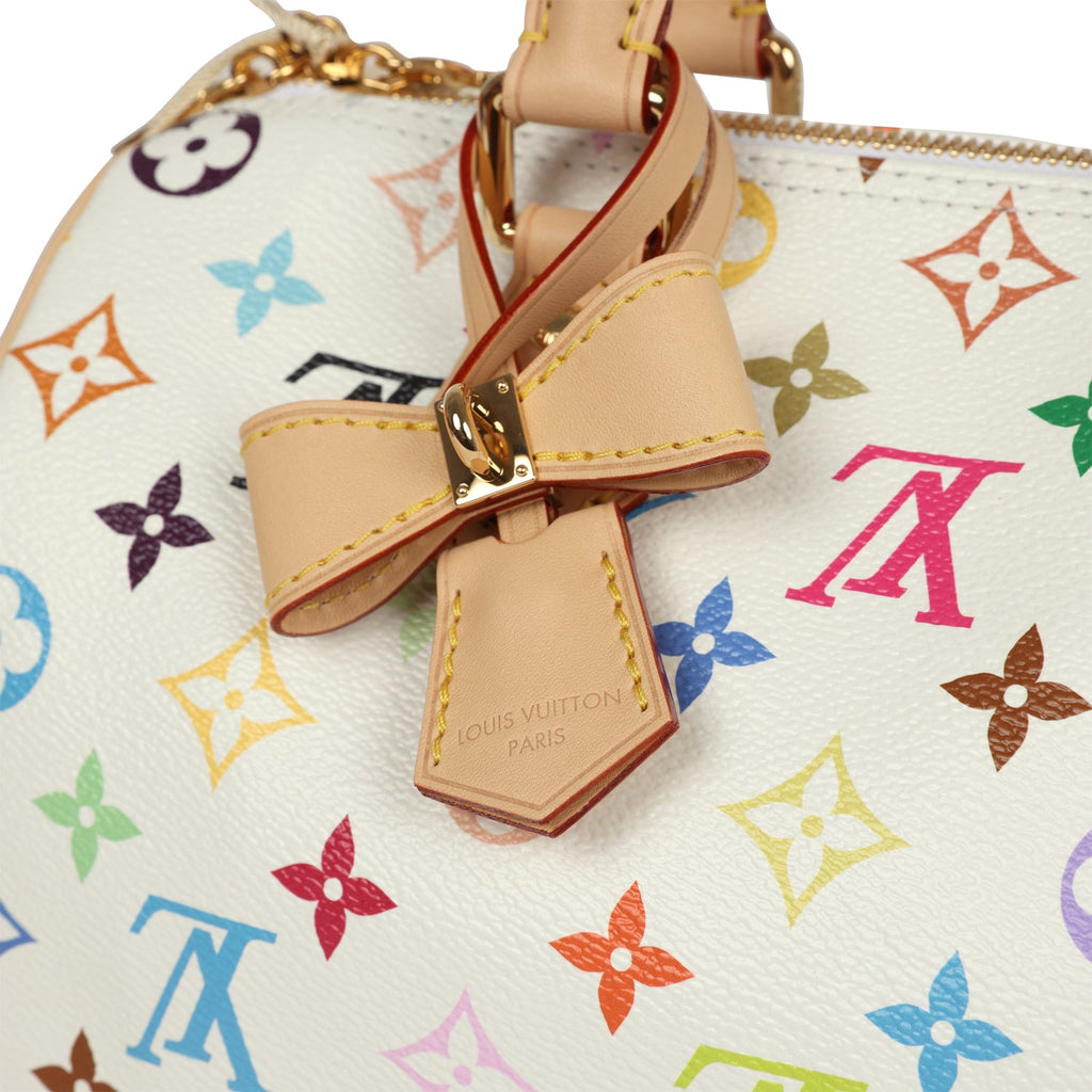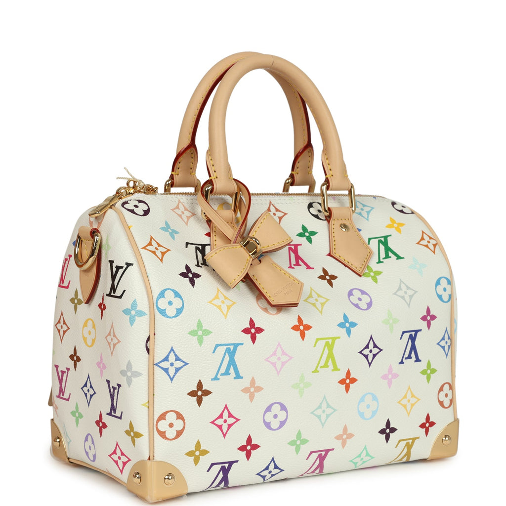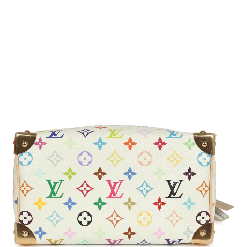Louis Vuitton X Takashi Murakami Speedy 25 Bandouliere White Multicolor Monogram Gold Hardware