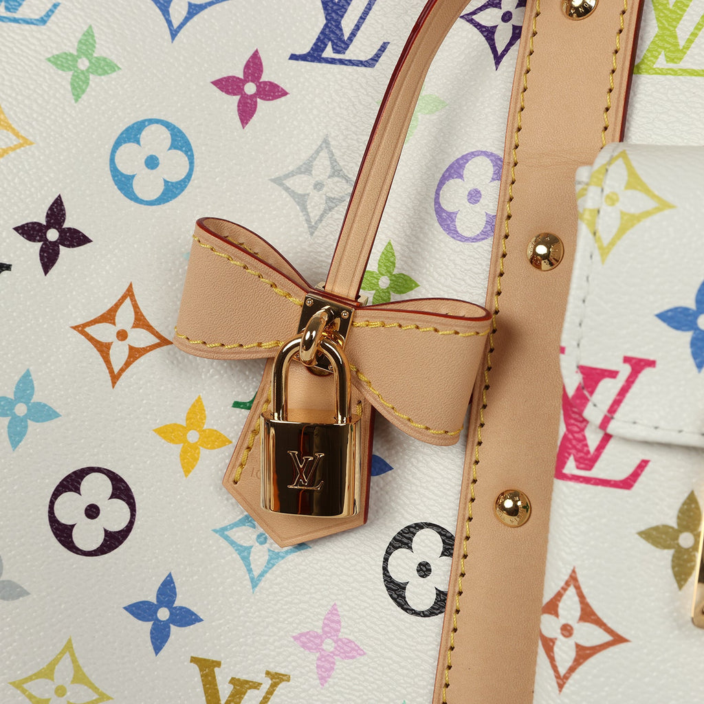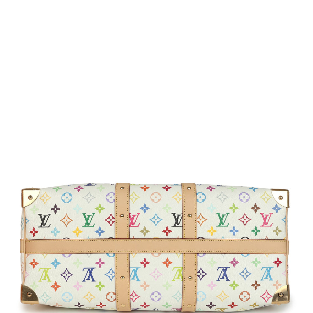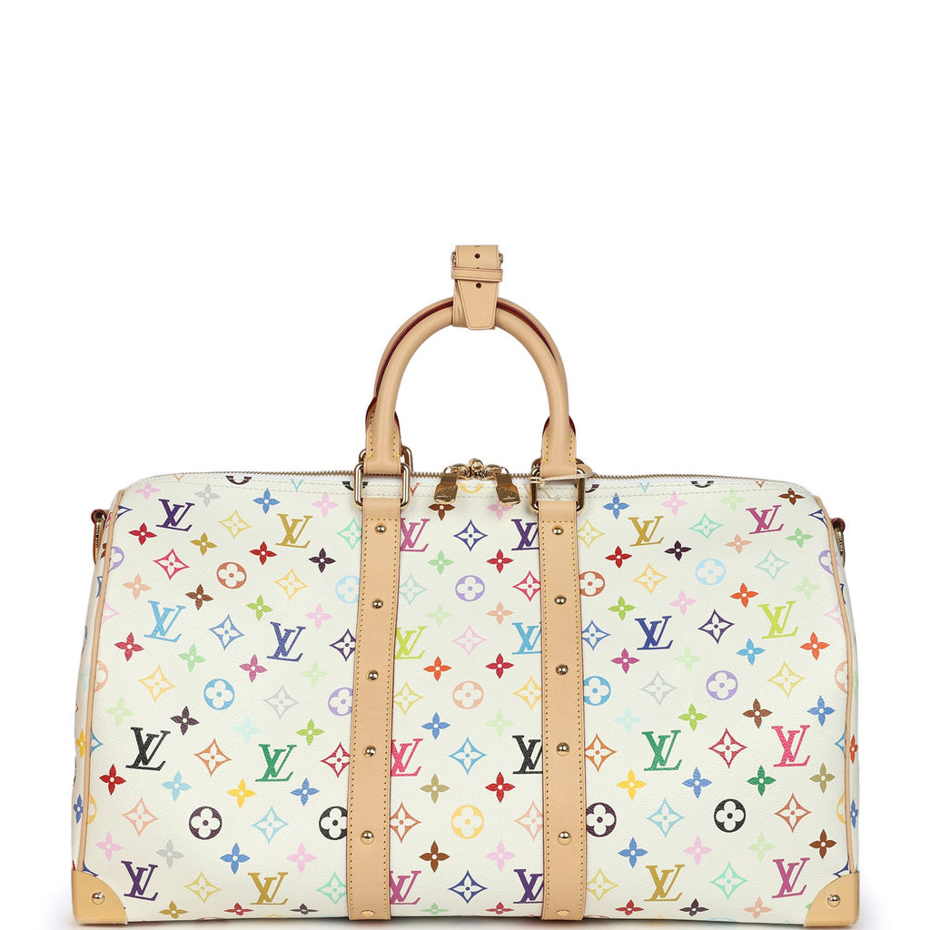 Louis Vuitton X Takashi Murakami Keepall Bandouliere 45 White Monogram Multicolored Gold Hardware
