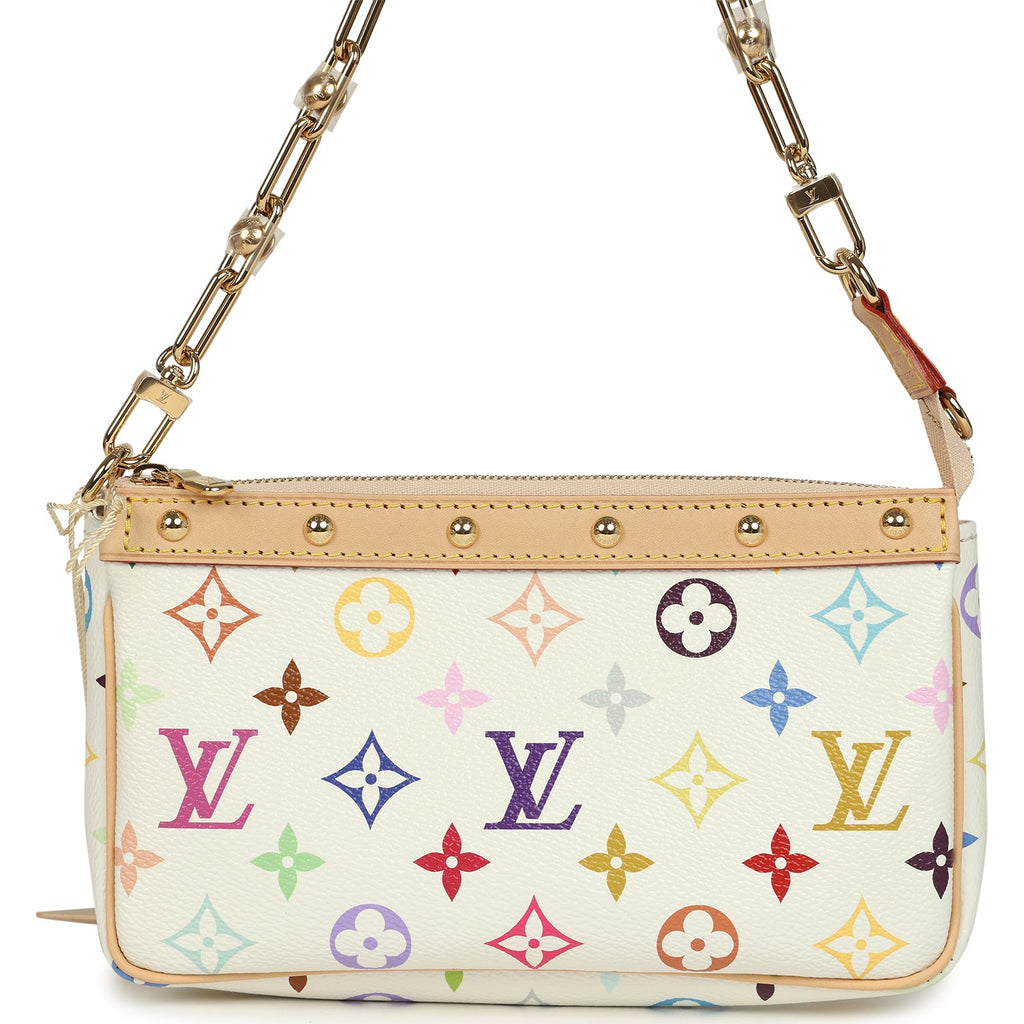 Louis Vuitton X Takashi Murakami Pochette Accessories White Multicolored Monogram Gold Hardware
