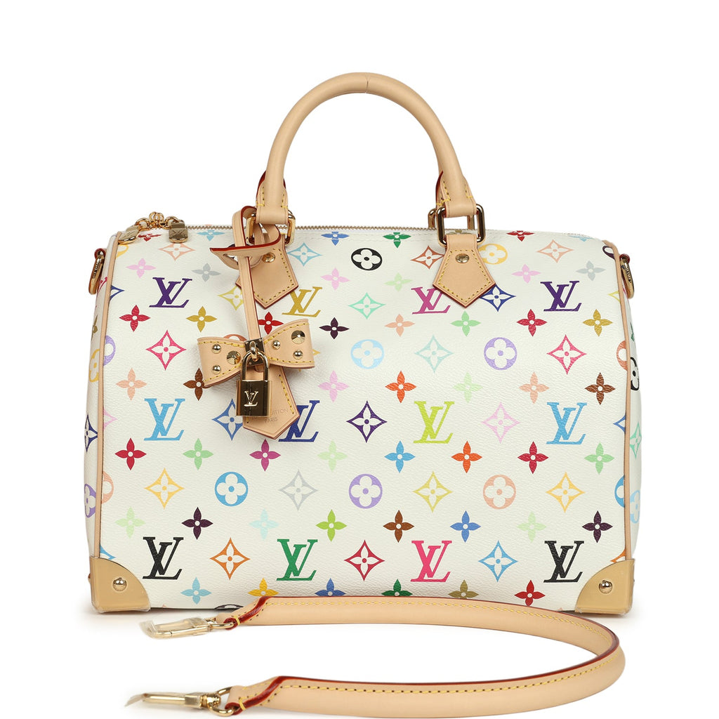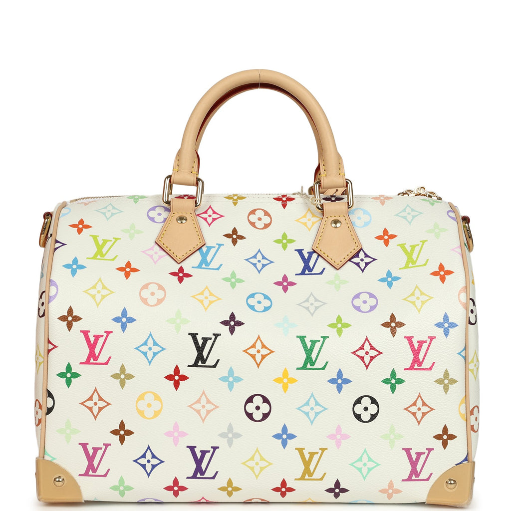 Louis Vuitton X Takashi Murakami Soft Speedy 30 White Multicolored Monogram Gold Hardware