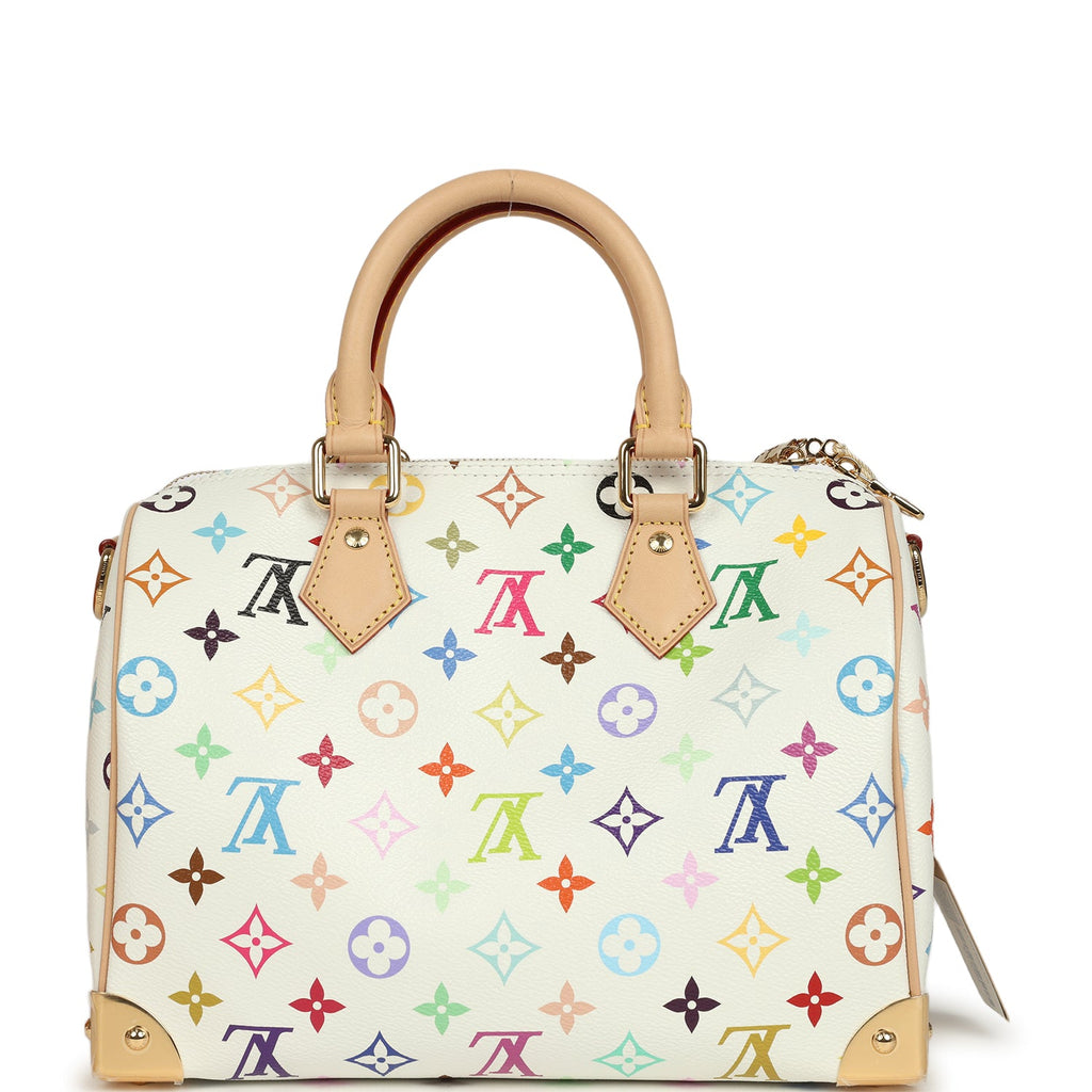 Louis Vuitton X Takashi Murakami Speedy 25 Bandouliere White Multicolored Monogram Gold Hardware