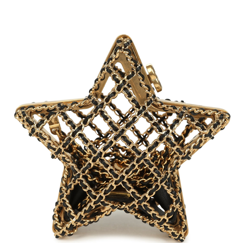 Pre-owned Chanel CC Star Minaudiere Clutch with Chain Black Leather Gold Hardware