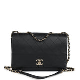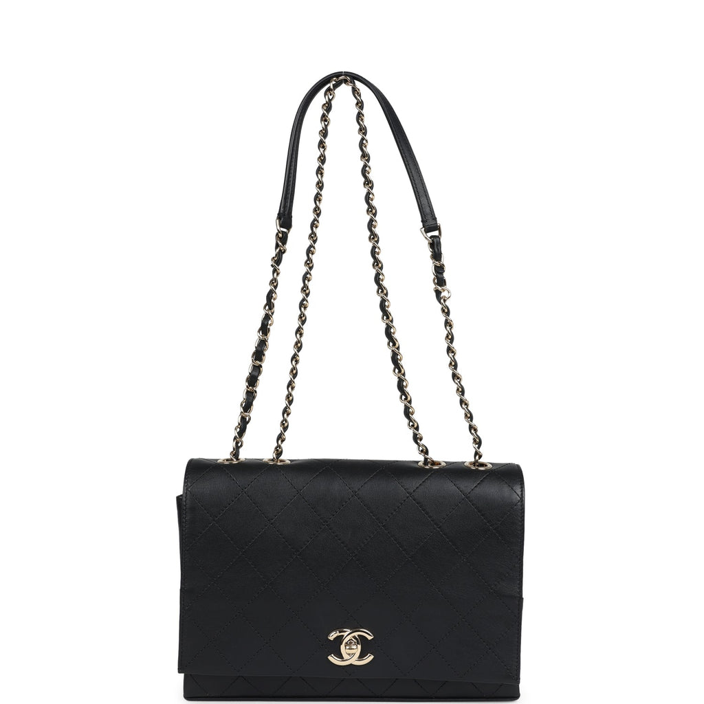 Pre-owned Chanel Flap Bag Black Calfskin Light Gold Hardware