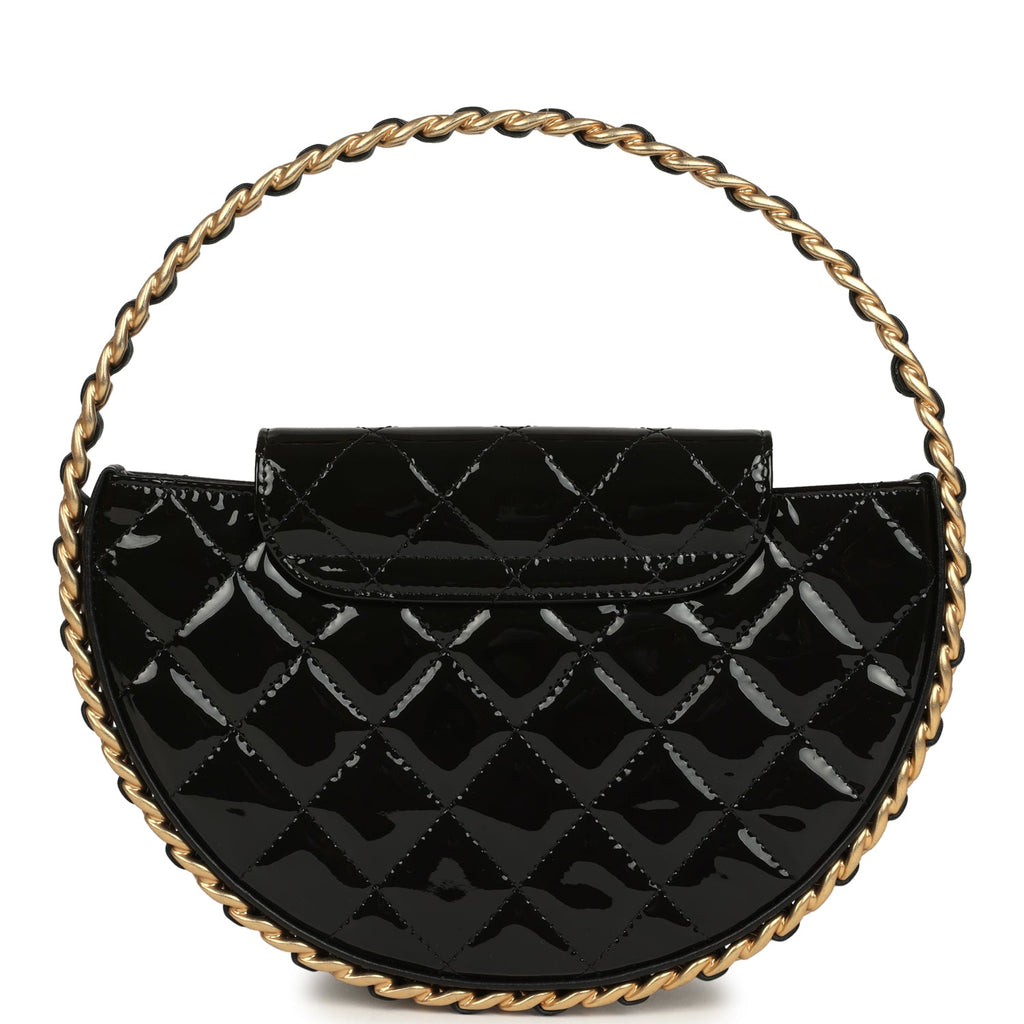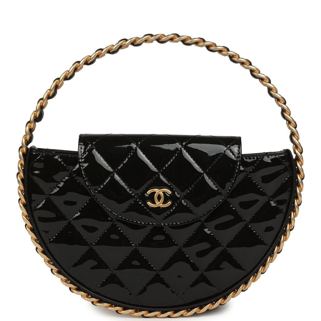 Pre-owned Chanel Hoop Bag Black Patent Leather Gold Hardware