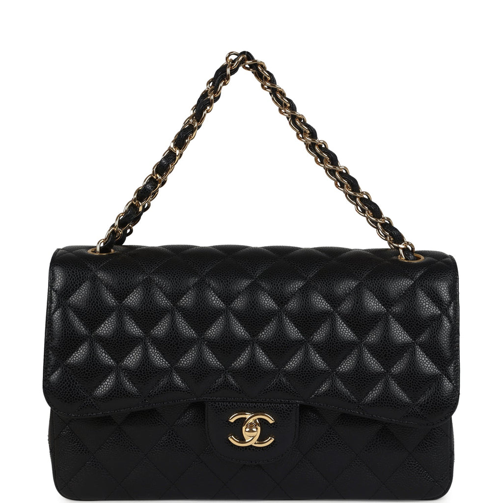 Pre-owned Chanel Jumbo Classic Double Flap Bag Black Caviar Gold Hardware