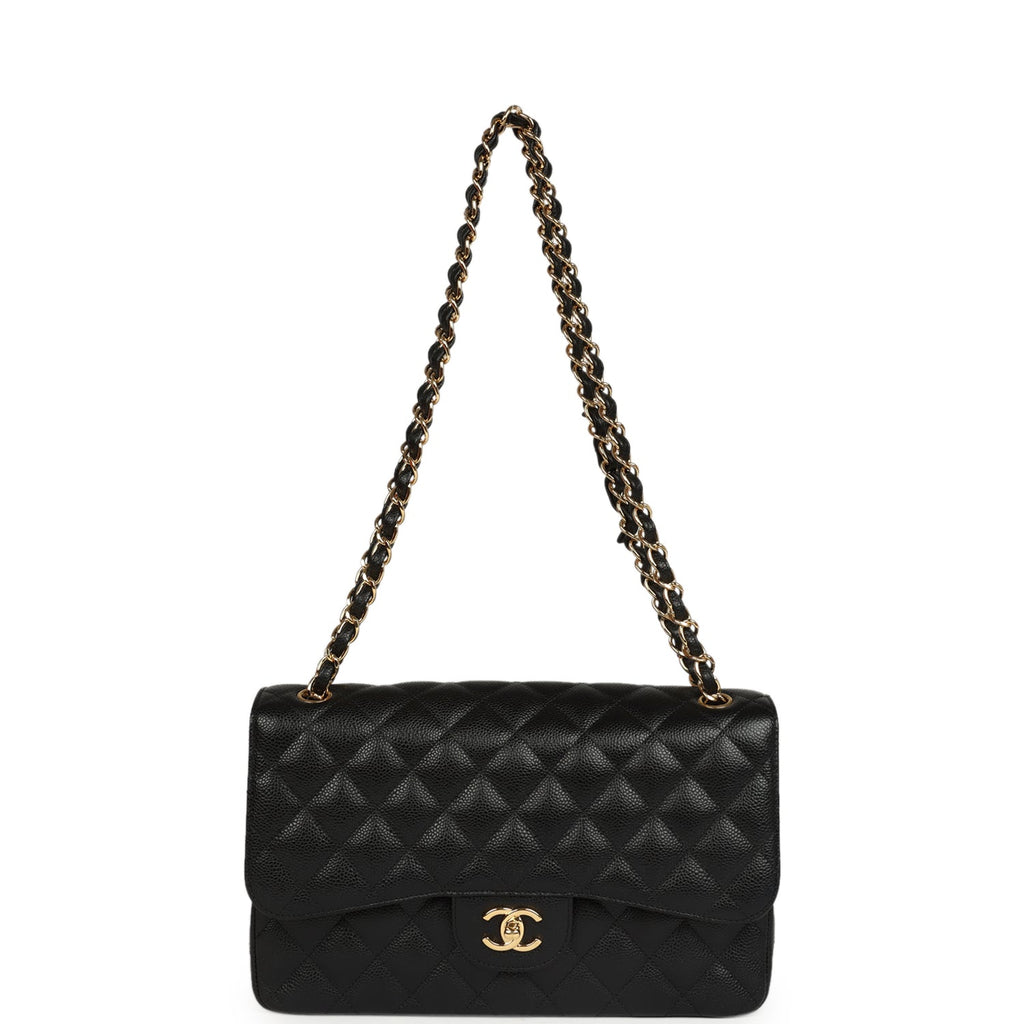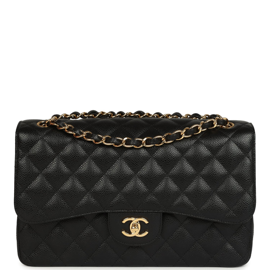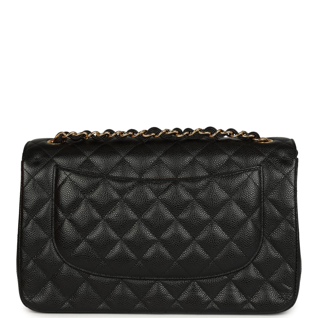 Pre-owned Chanel Jumbo Classic Double Flap Bag Black Caviar Gold Hardware