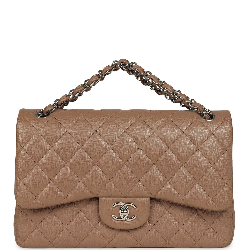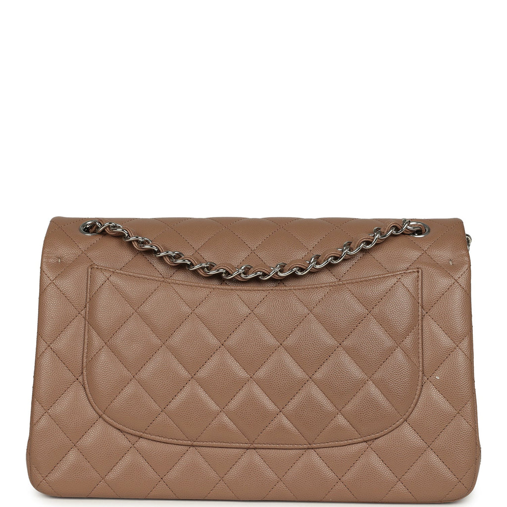Pre-owned Chanel Jumbo Classic Double Flap Bag Dark Beige Caviar Silver Hardware