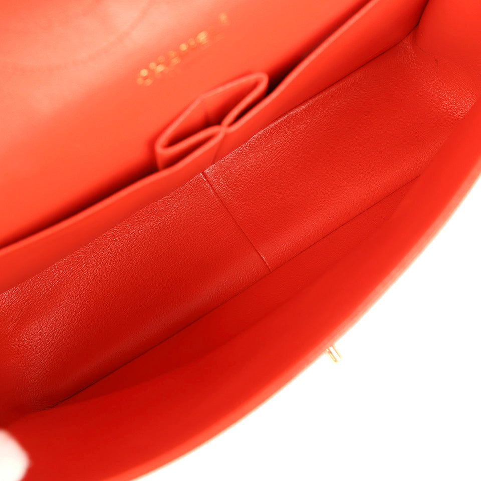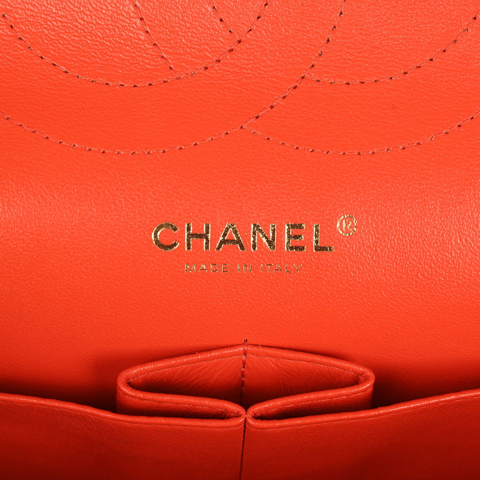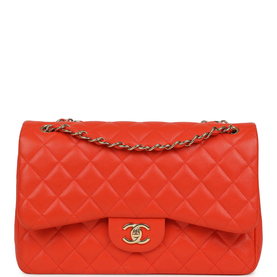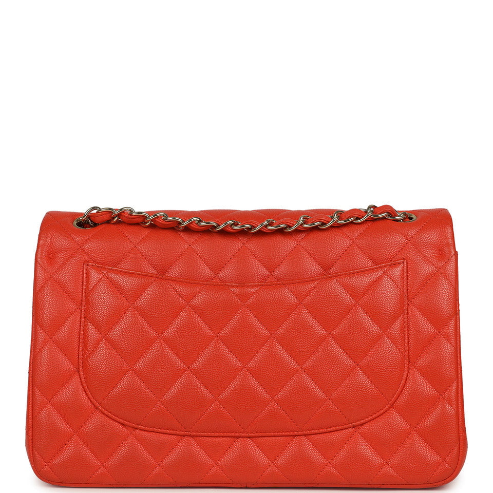 Pre-owned Chanel Jumbo Classic Double Flap Bag Dark Orange Shiny Caviar Light Gold Hardware