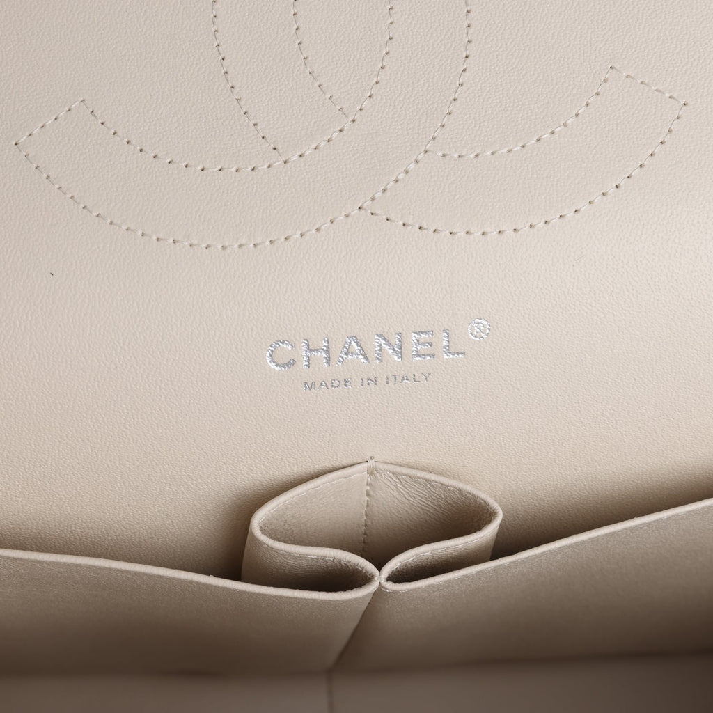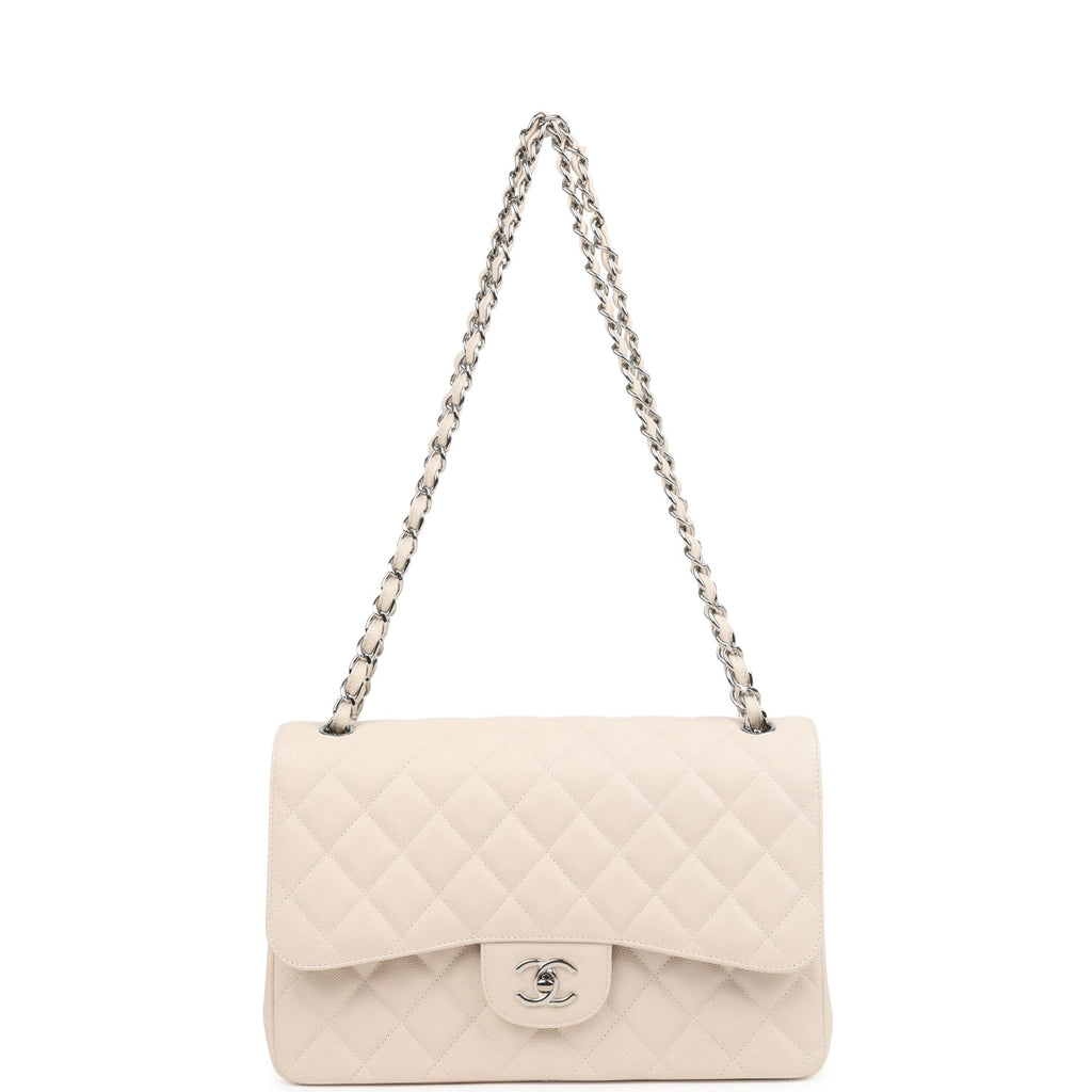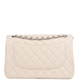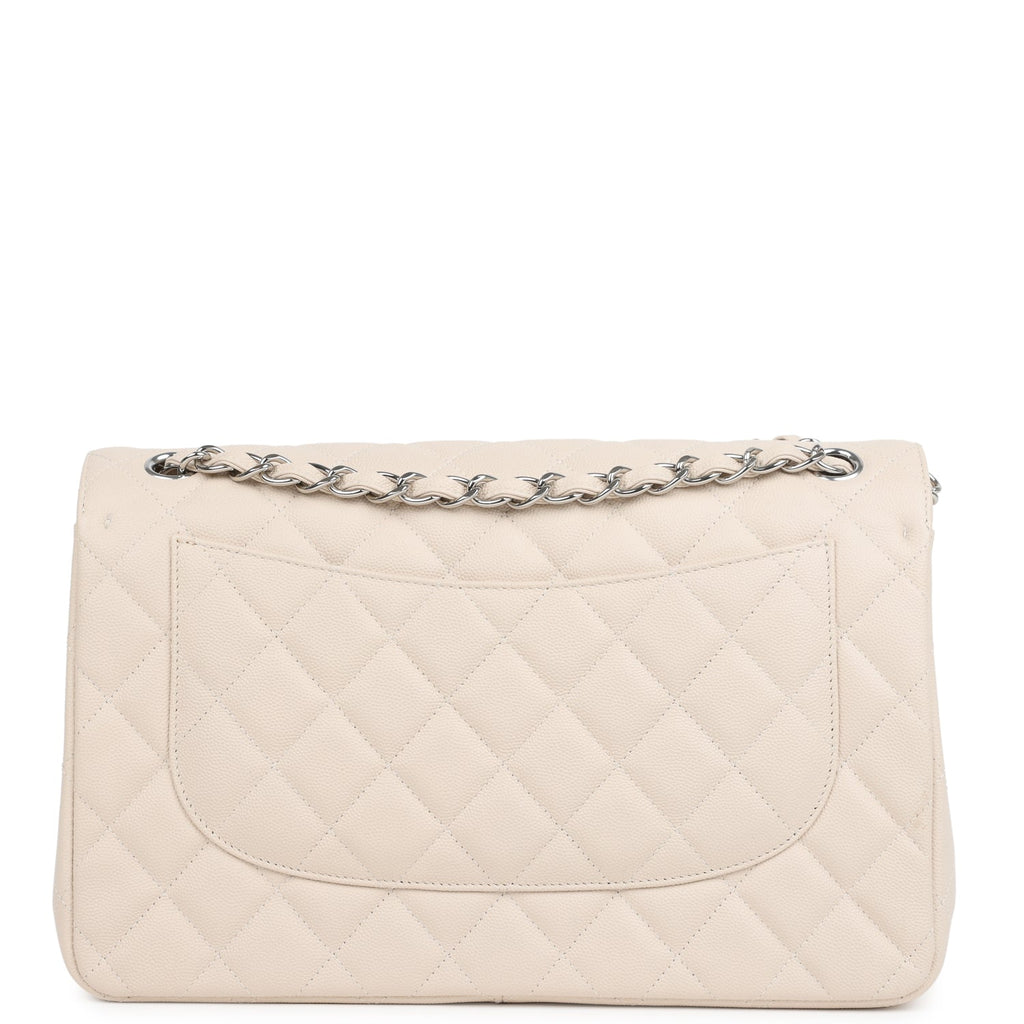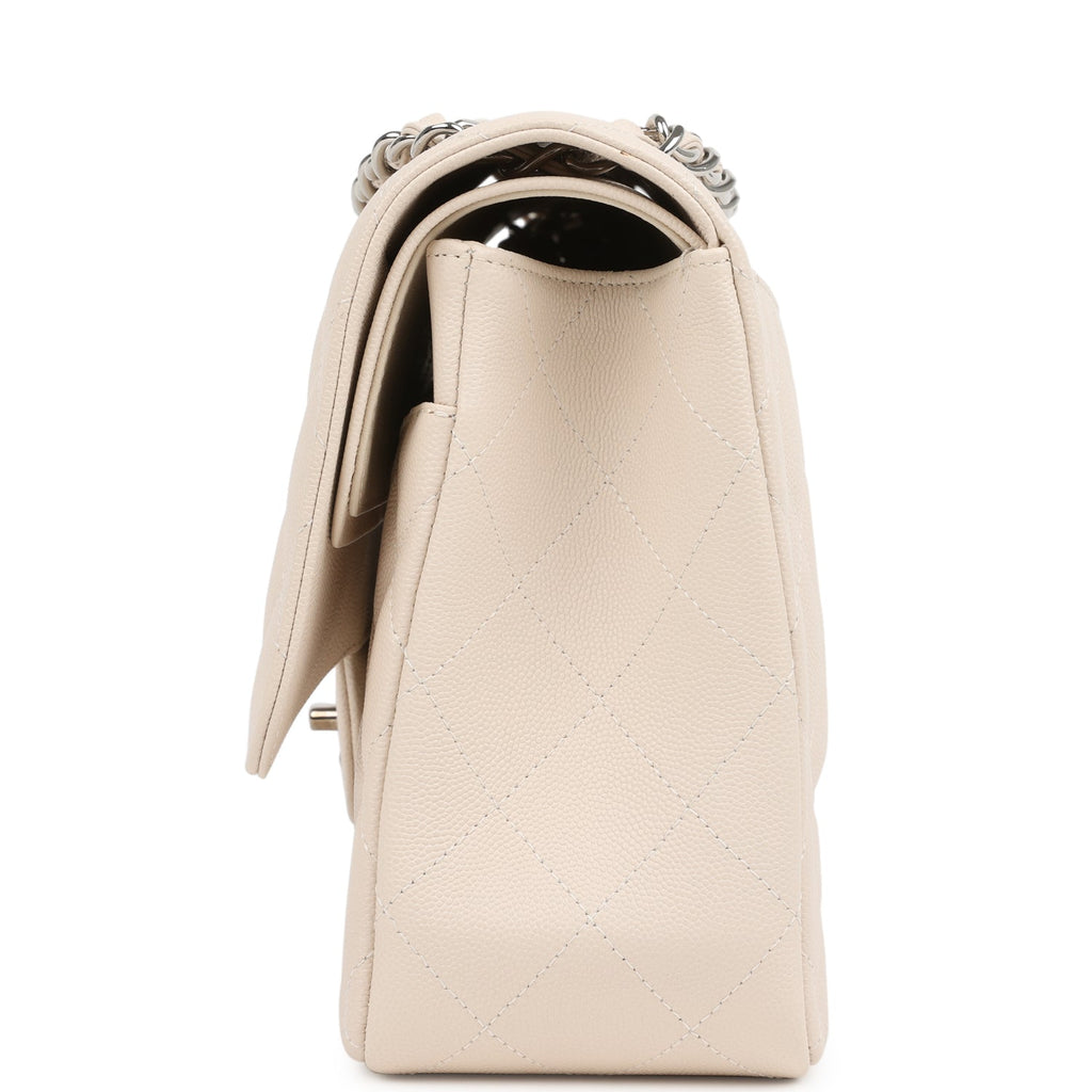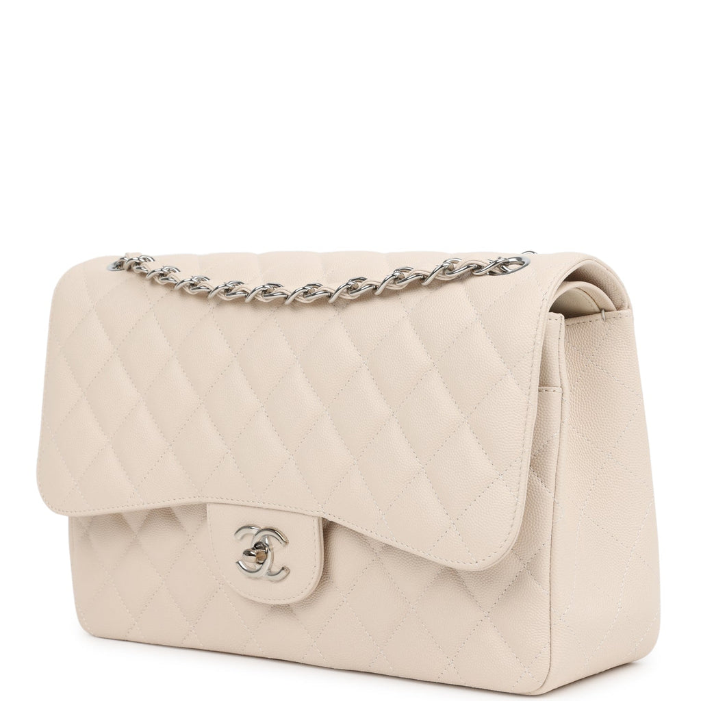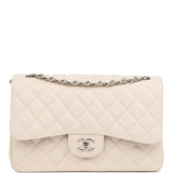 Pre-owned Chanel Jumbo Classic Double Flap Bag Light Beige Caviar Silver Hardware