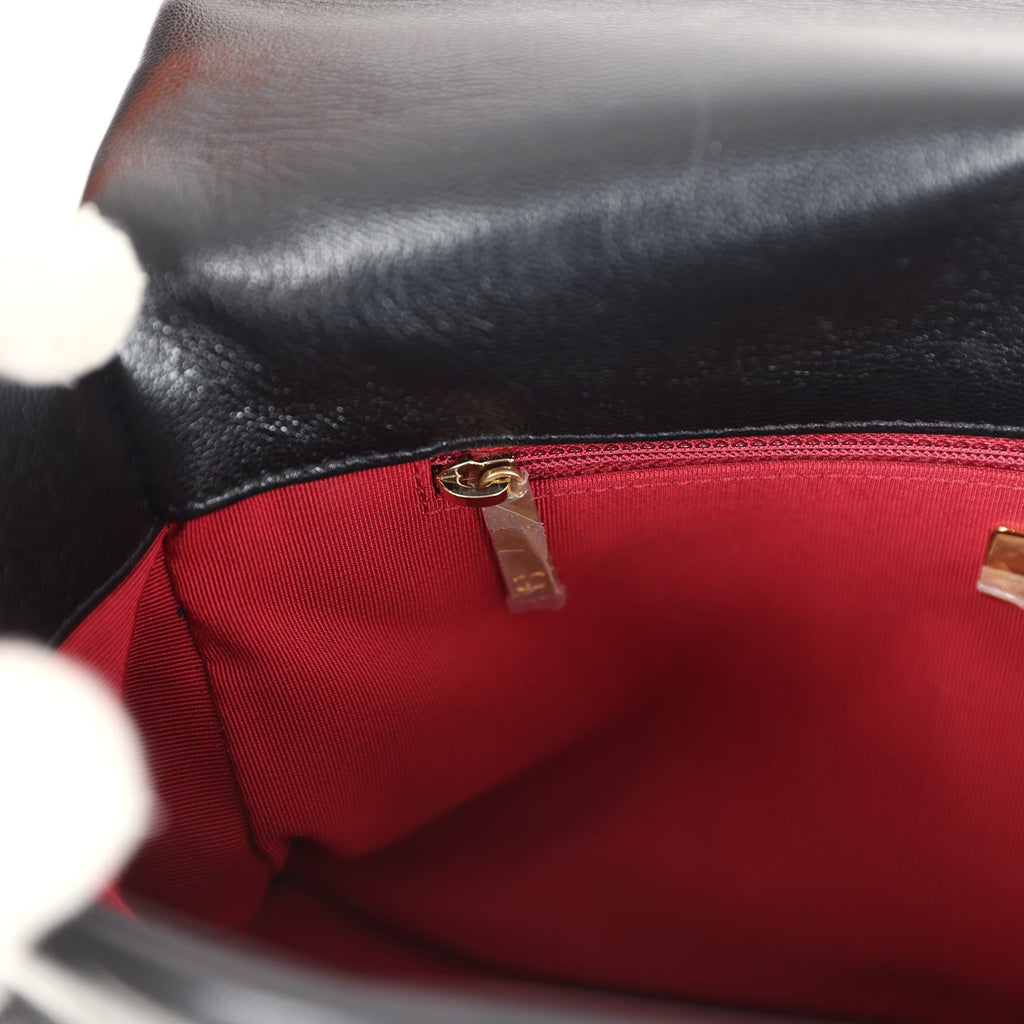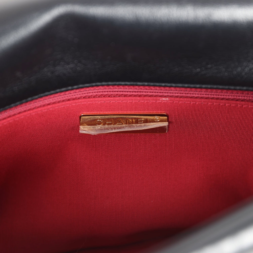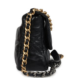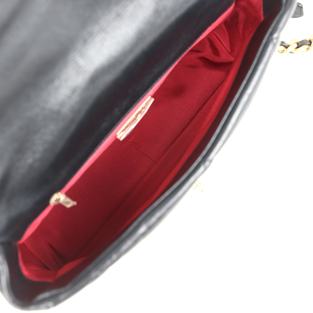 Pre-owned Chanel Large 19 Flap Bag Black Shiny Lambskin Mixed Metal Hardware