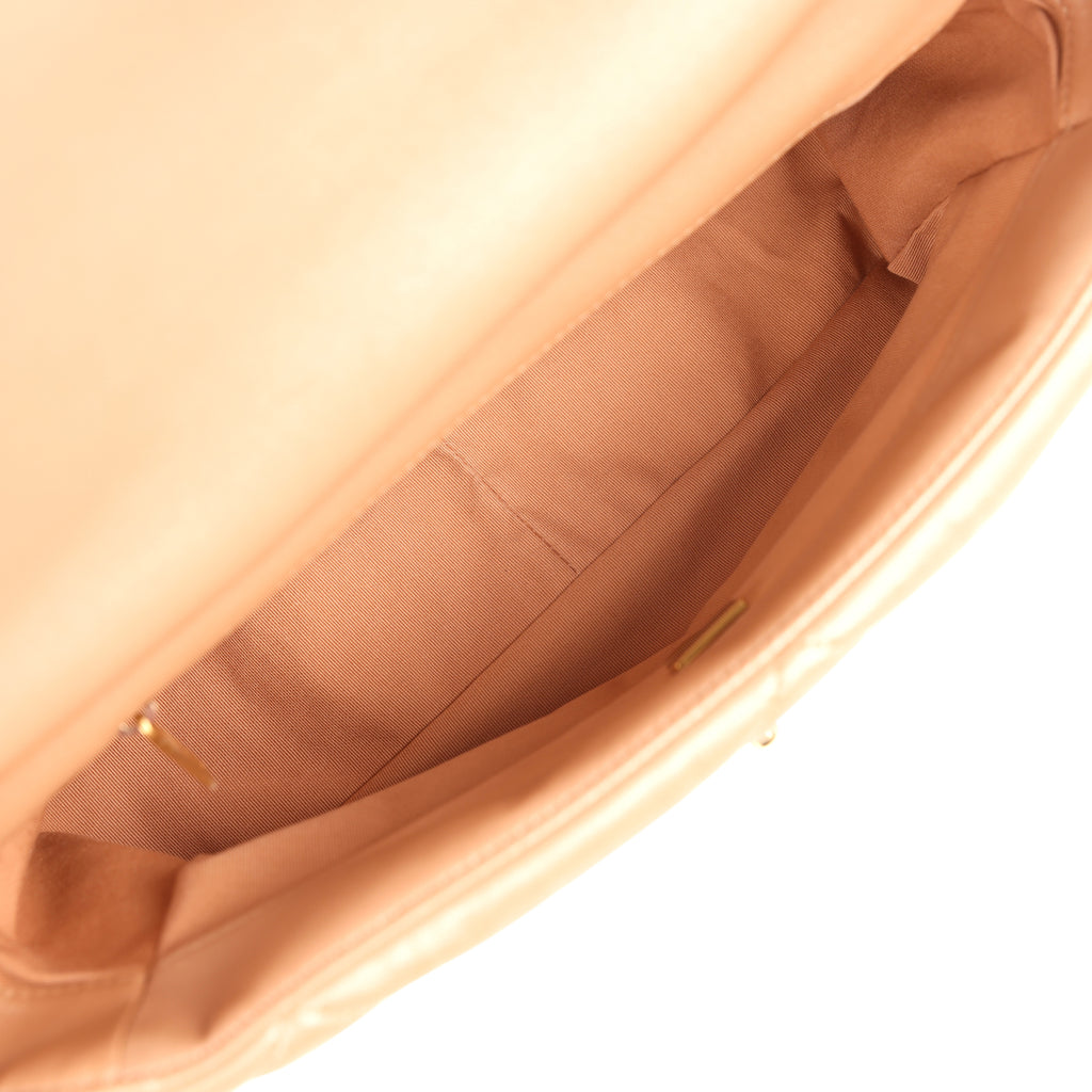 Pre-owned Chanel Large 19 Flap Bag Pearly Blush Shiny Lambskin Mixed Metal Hardware