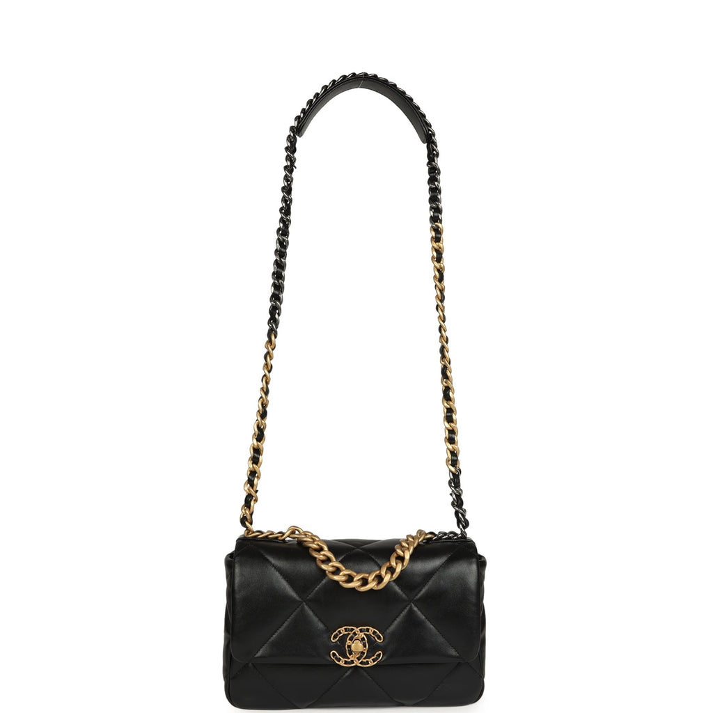 Pre-owned Chanel Medium 19 Flap Bag Black Shiny Lambskin Mixed Hardware