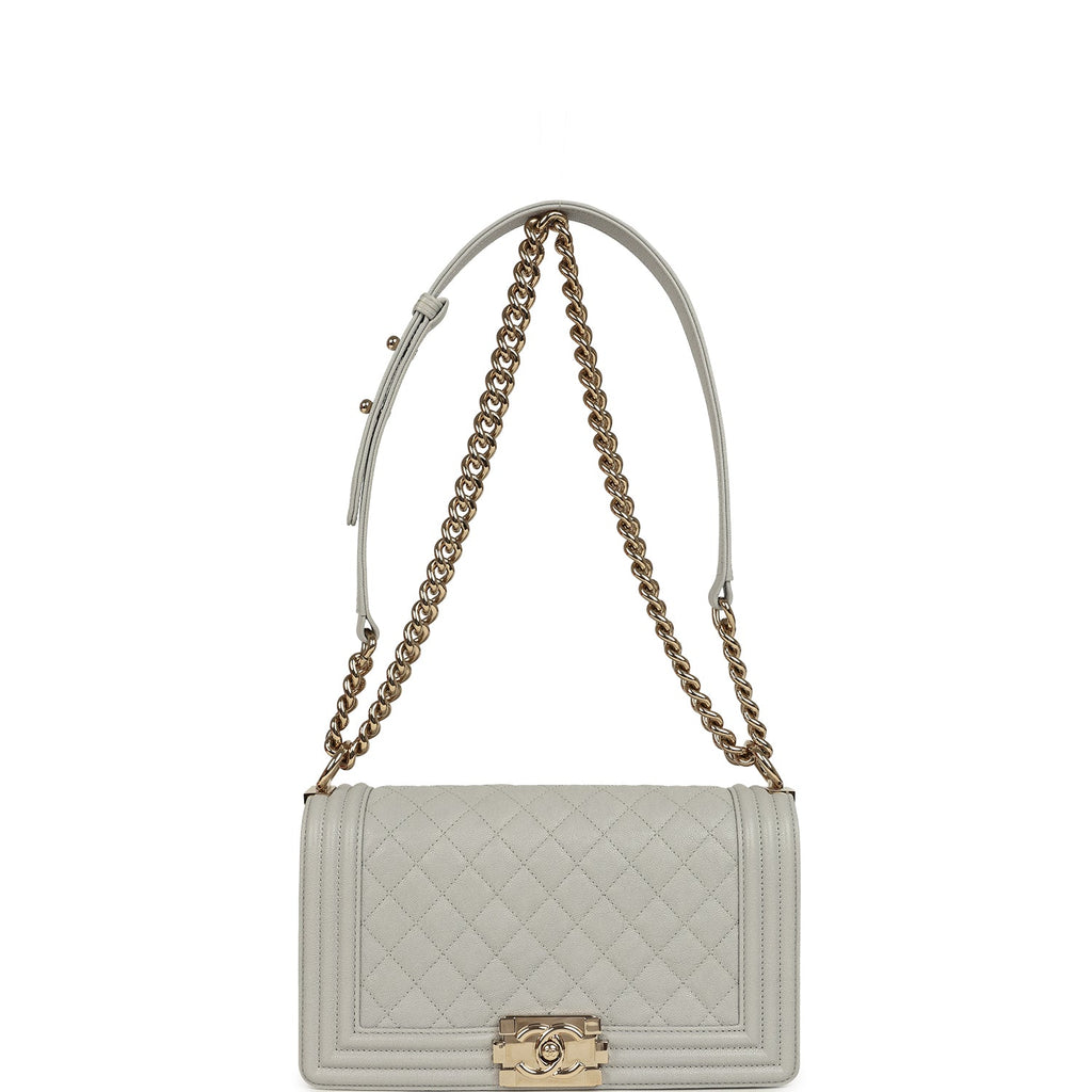 Pre-owned Chanel Medium Boy Bag Grey Shiny Caviar Light Gold Hardware