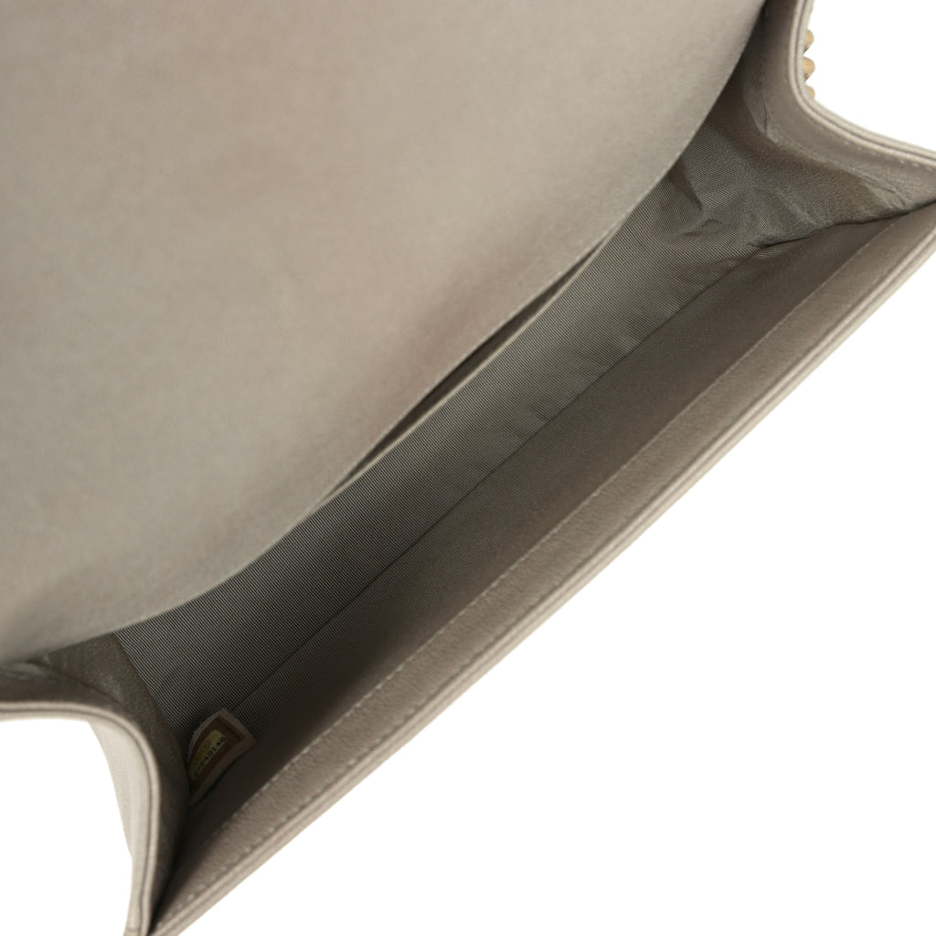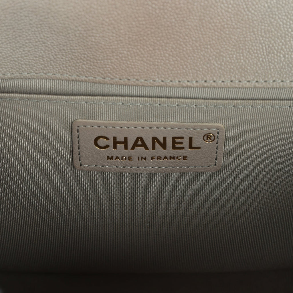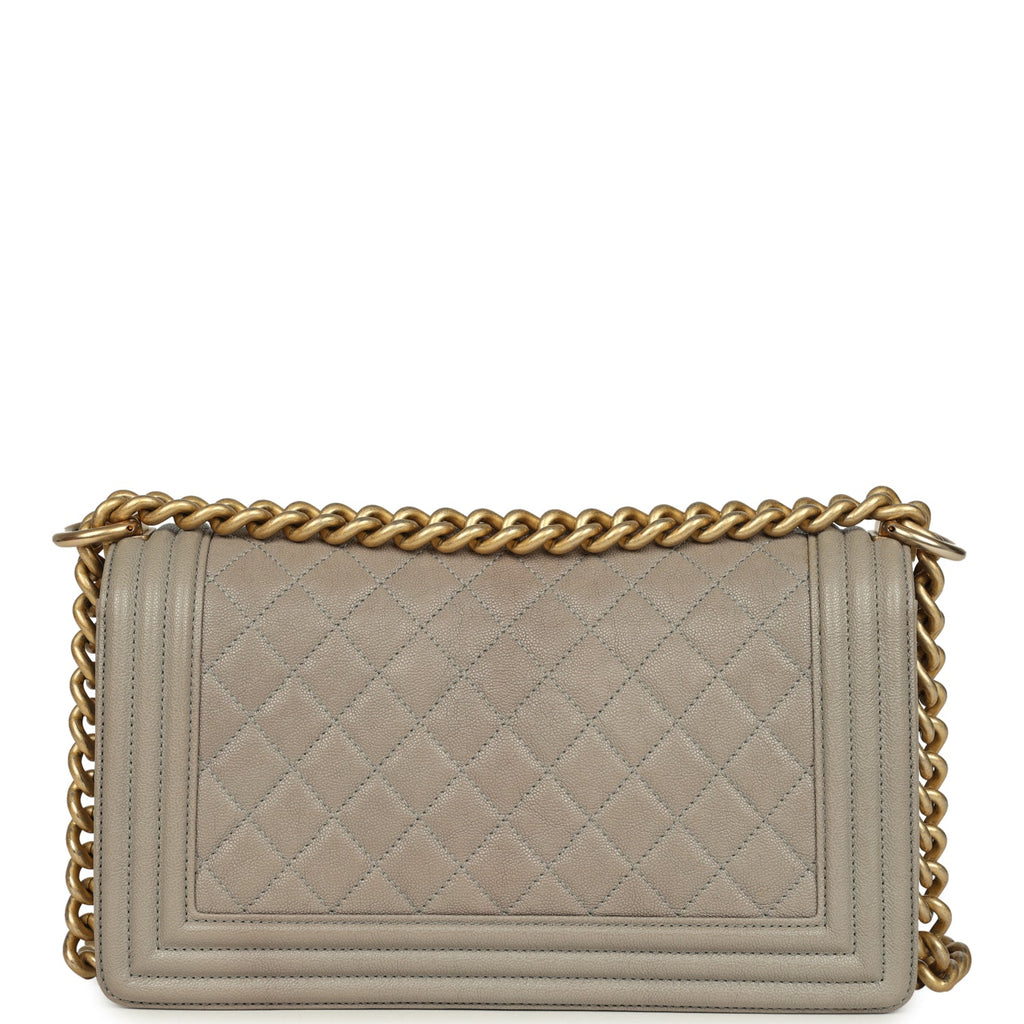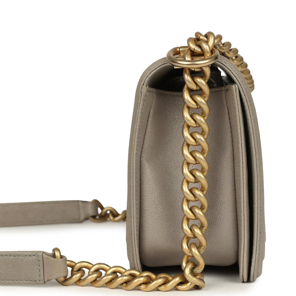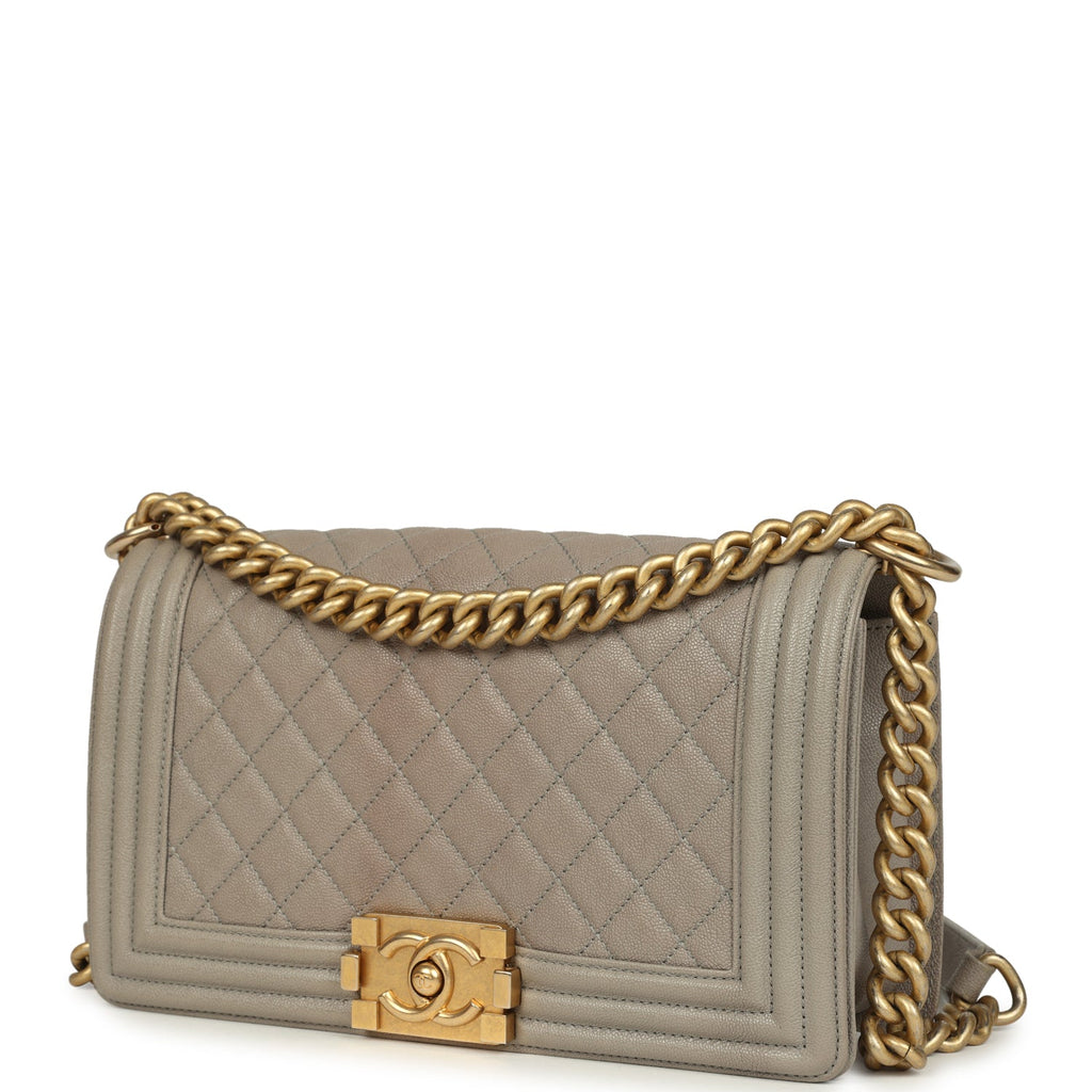 Pre-owned Chanel Medium Boy Bag Taupe Caviar Antique Gold Hardware