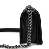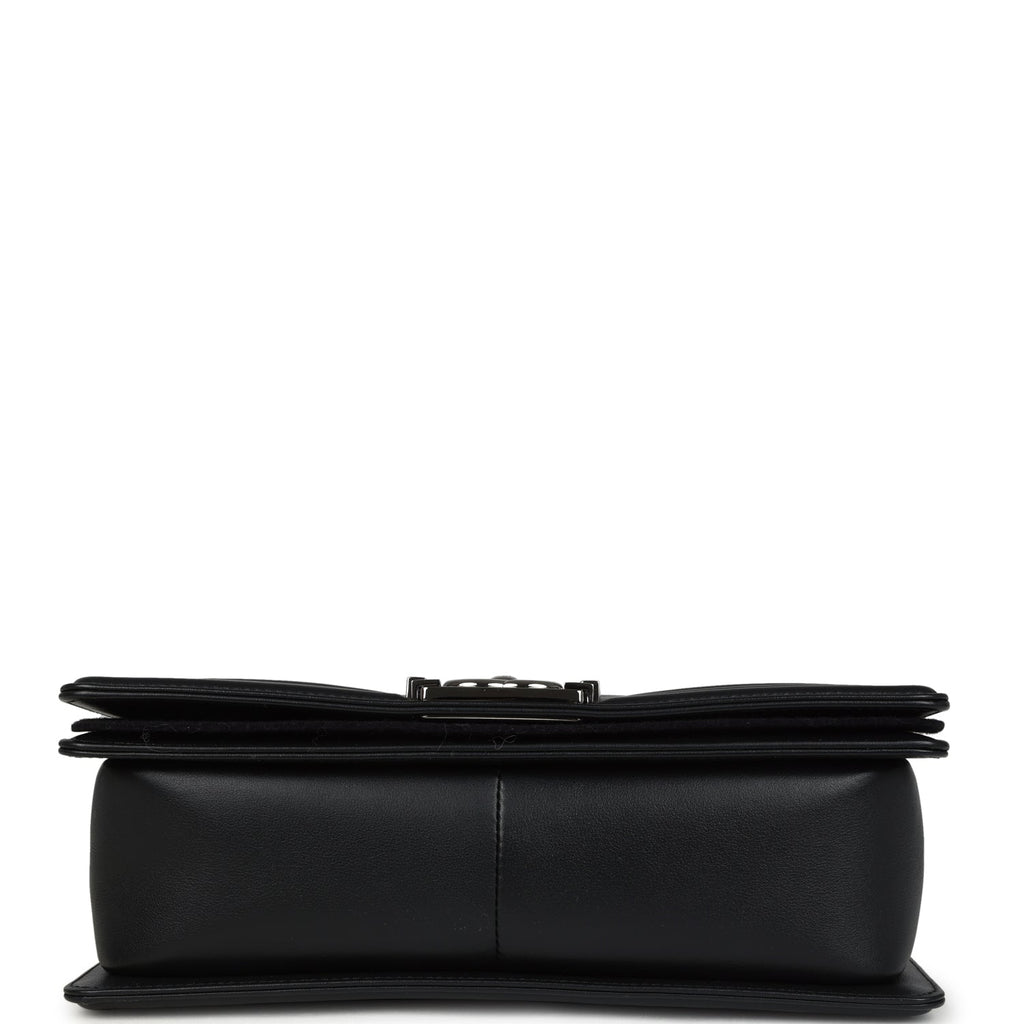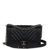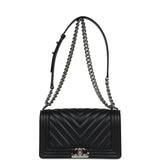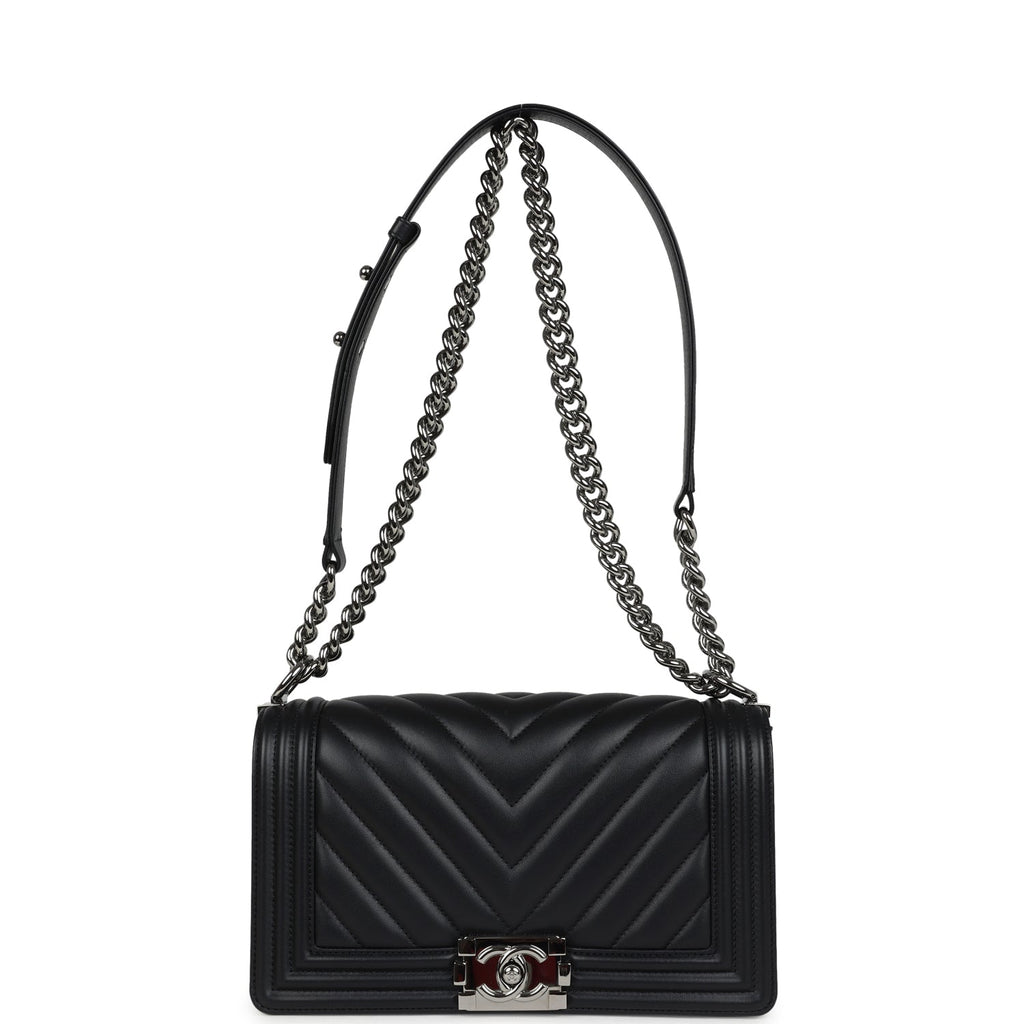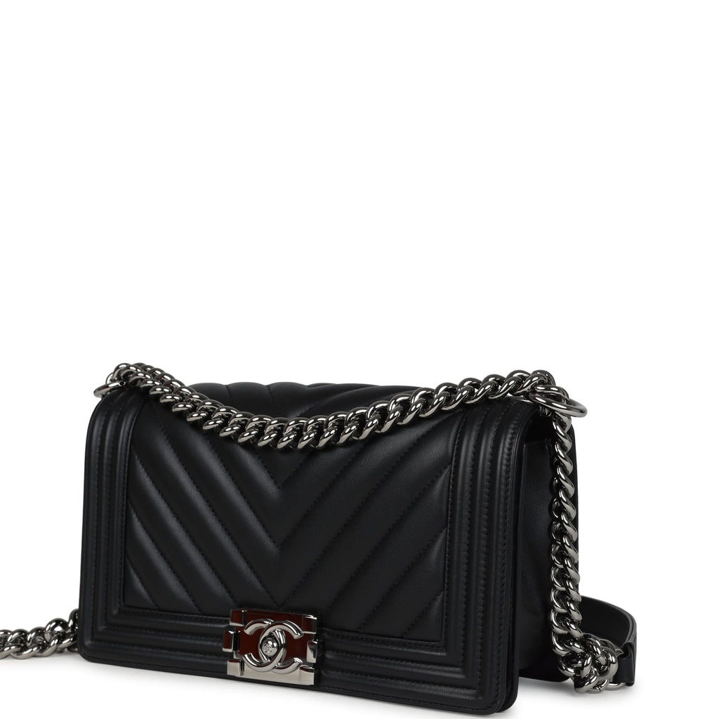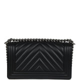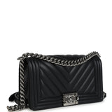 Pre-owned Chanel Medium Chevron Boy Bag Black Lambskin Ruthenium Hardware